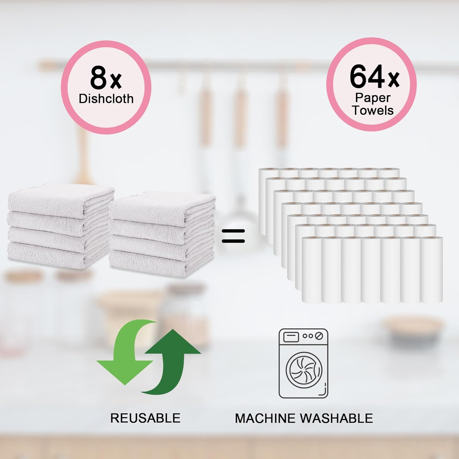 kimteny Kitchen Cloth Dish Towels, 13x28 Inches Premium Dishcloths, Super Absorbent Coral Velvet Microfiber Cleaning Cloths, Fast Drying Rags for Washing Dishes (13x28-8 Pack, White)
