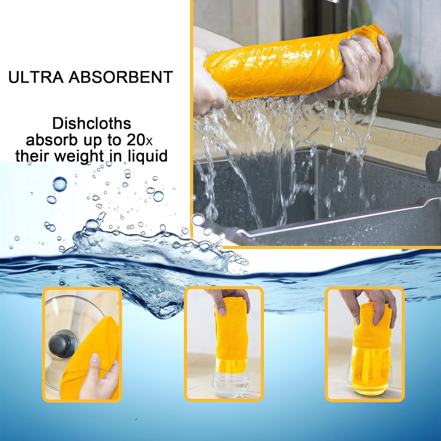 - COUNTLESS USES - Due to being highly absorbent, these microfiber dish towels are great for dust cloths, drying hands, wiping stains, cleaning windows, as well as cheese strainers, salad spinners, a wide variety of household chores. As good as having a magic wand in your hands! Get the job done quickly in a right way with our dish cloths!