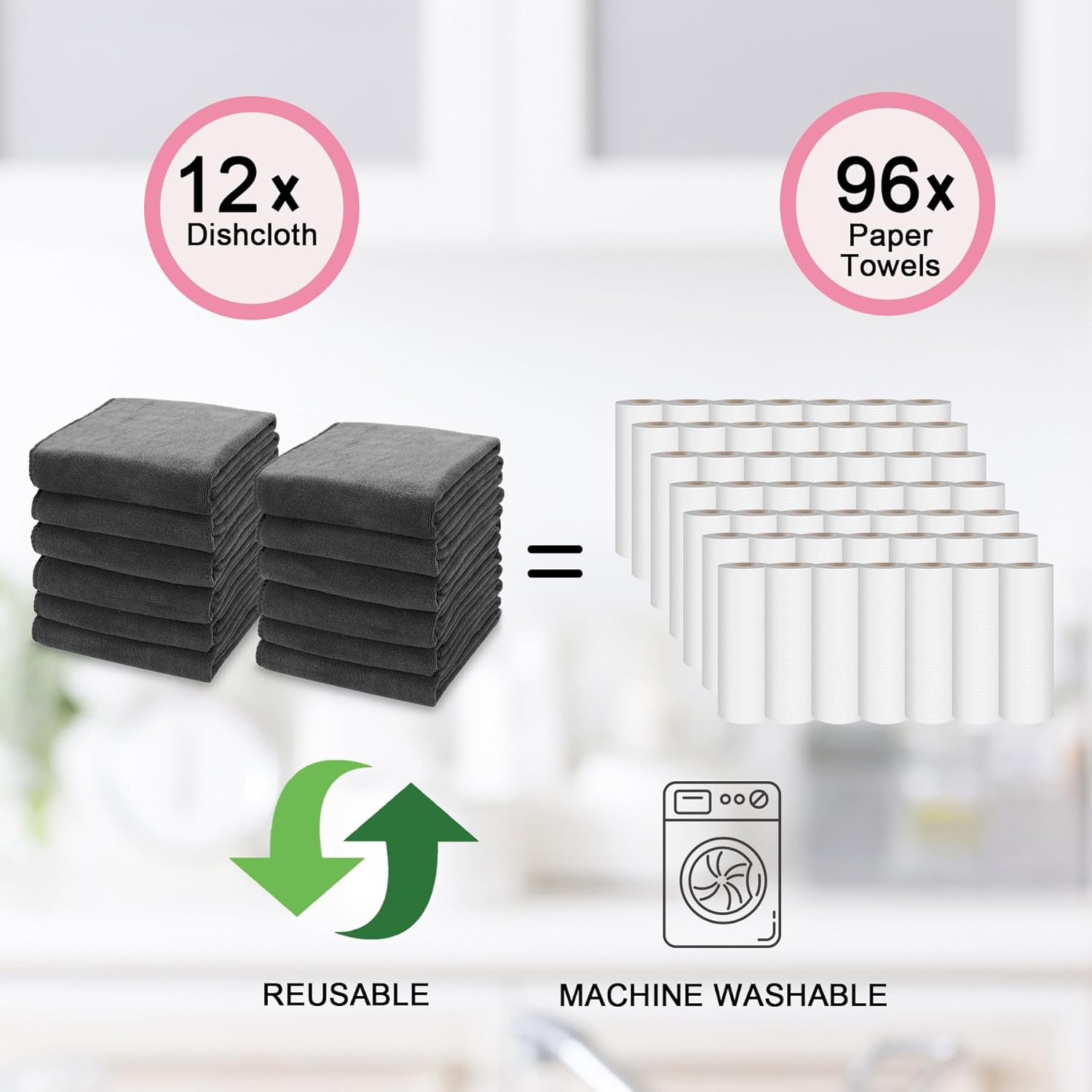 kimteny 13x28 Inches Kitchen Cloth Dish Towels, 400 GSM Premium Dishcloths, Super Absorbent Coral Velvet Microfiber Cleaning Cloths, Fast Drying Rags for Washing Dishes (12 Pack, Dark Grey)