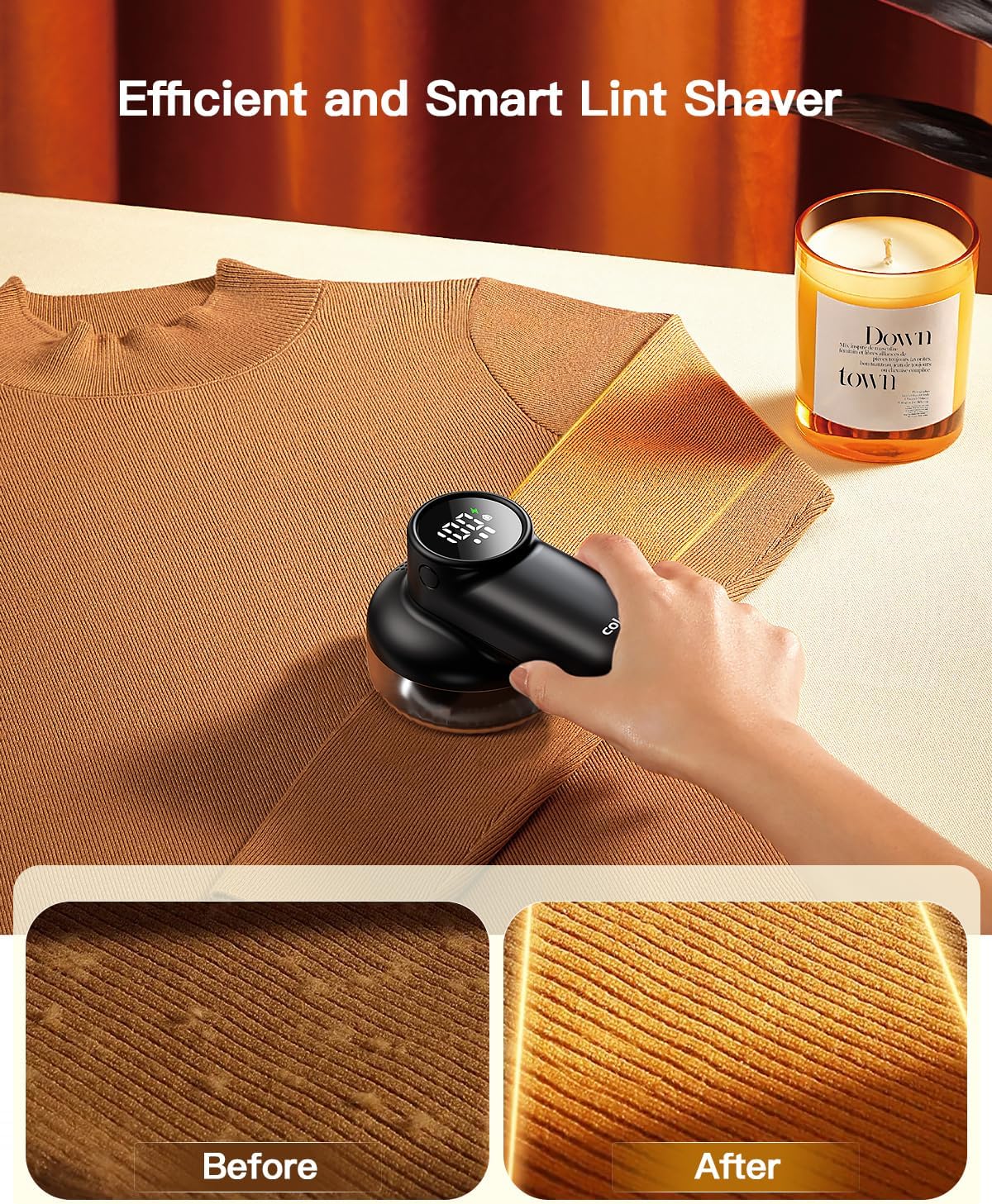 coldSky Rechargeable Fabric Shaver, Lint Shaver with Digital Display, Sweater Shaver with 6-Leaf Blades and Safety Lock, 3-Speeds Defuzzer Remove Fuzz, Pills from Clothes, Furniture, Sofa, Blanket