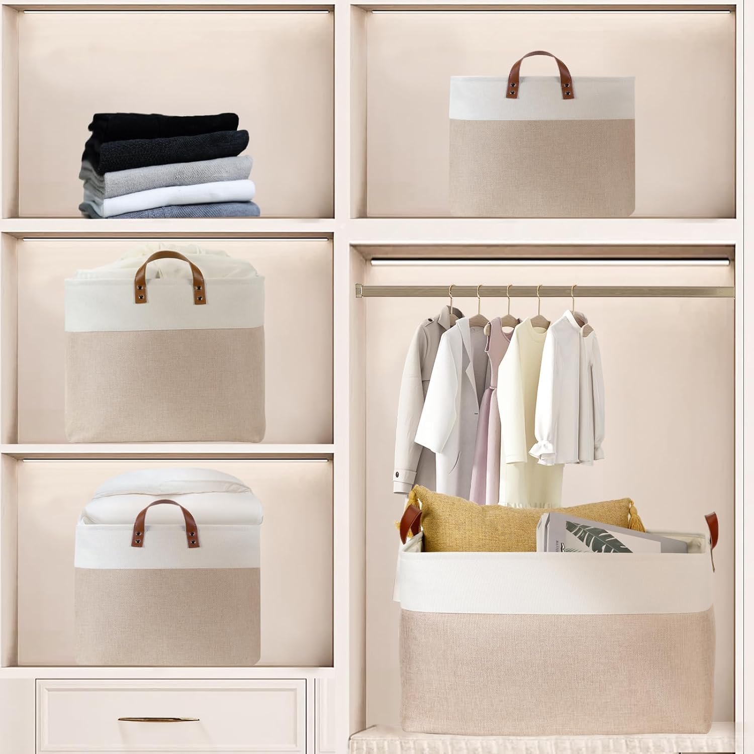 - 【Extra Large Storage Capacity】The large storage basket measures 22 x 15 x 13 inches and provides 70L spacious space that can hold a lot of things such as pillows, blankets, clothes, toys, books, etc. After use, keep your shelves, closet, cabinets, living room, bedroom, nursery room, and laundry organized.