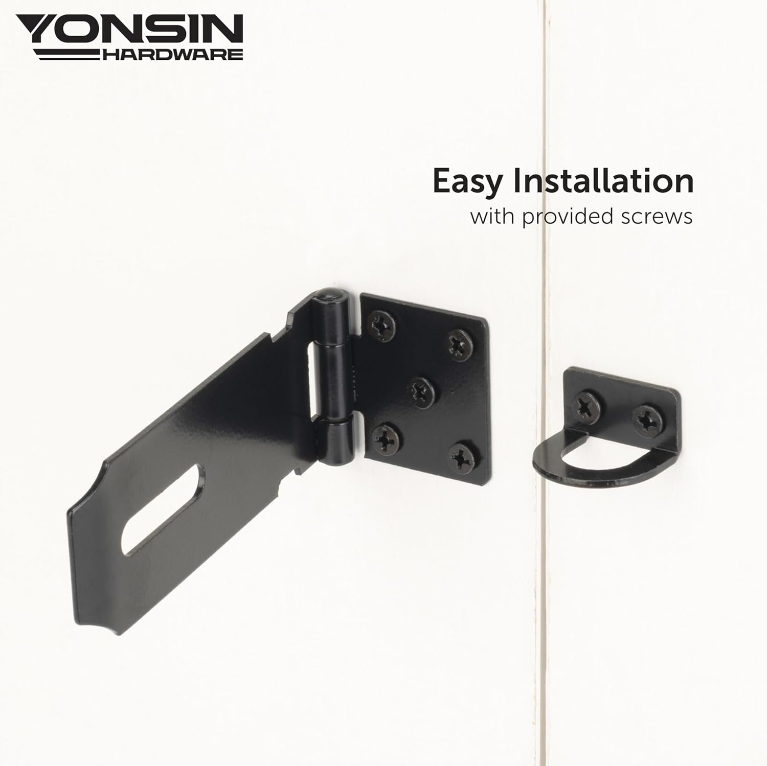 - 【Convenient and Safety】 You can adjust the mounting position according to you needs and fix the door hasp latch with included screws. The installation of the lock latch takes a few minutes. And the door hasp latch uses smooth edge to prevent accident injury.
