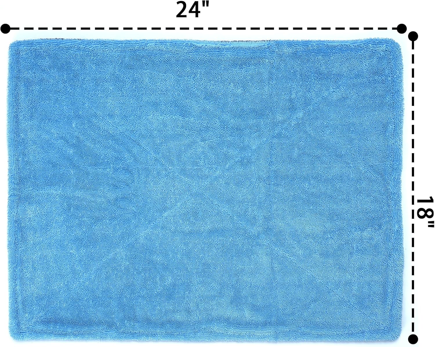 Greenfound Microfiber Towel for Cars, 1000GSM Car Drying Towel, Double Twist Pile & Edgeless Design, No Streaks, Scratches, or Water Spots, Soft and Absorbent, 18"×24", Blue&Grey