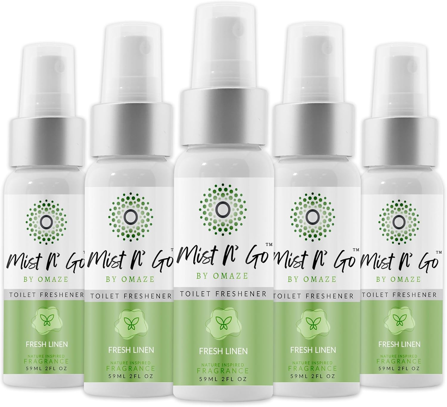 Mist N' Go Travel Toilet Spray - Odor Eliminator & Air Freshener (Fresh Linen) - 2oz x5