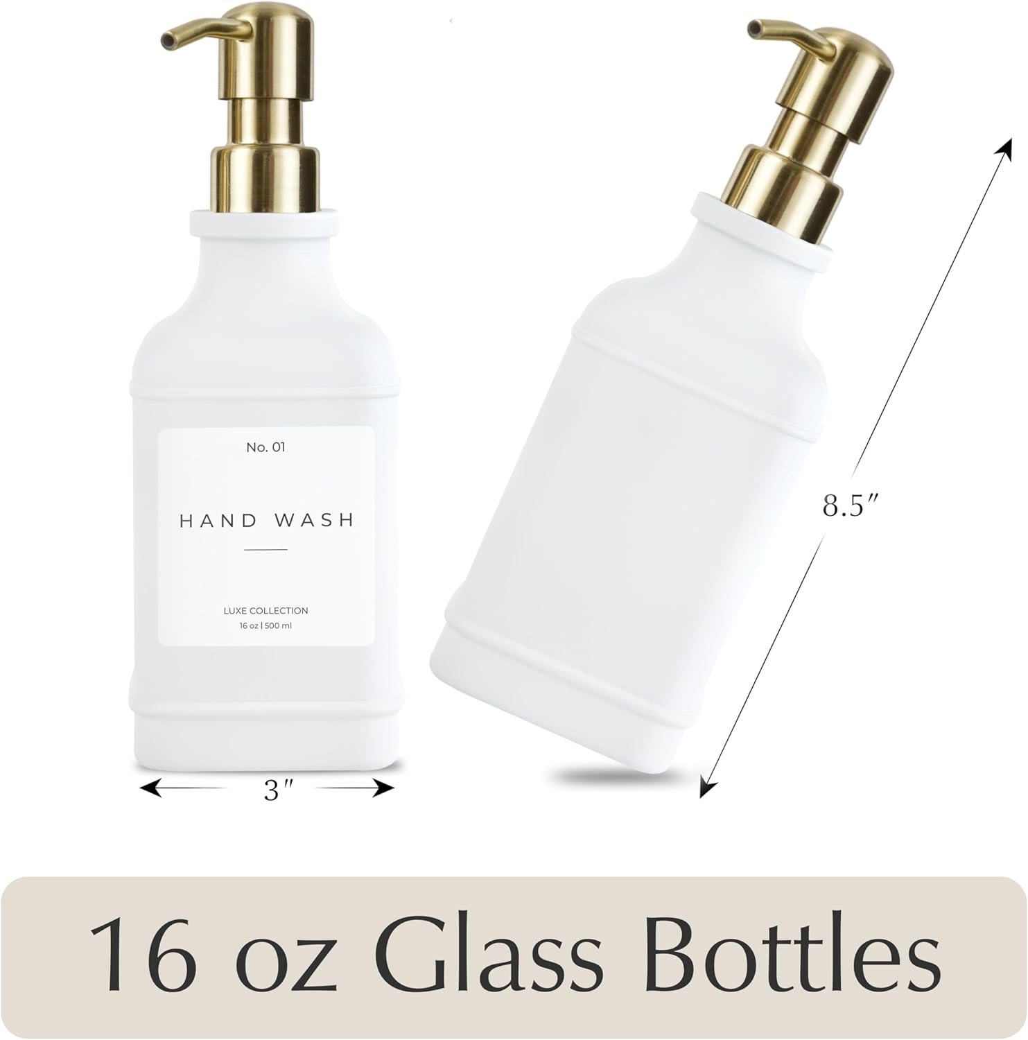 - ✅ PREMIUM QUALITY THAT LASTS – Designed to complement any space, these 16 oz glass soap dispensers are perfect for hand soap, dish soap, lotion, or shampoo. Ideal for sinks in your kitchen, bathroom, laundry room, or guest bath. Unlike dispensers that peel or break down, our bottles are made from thick, durable glass that resists wear and looks elegant on any countertop.