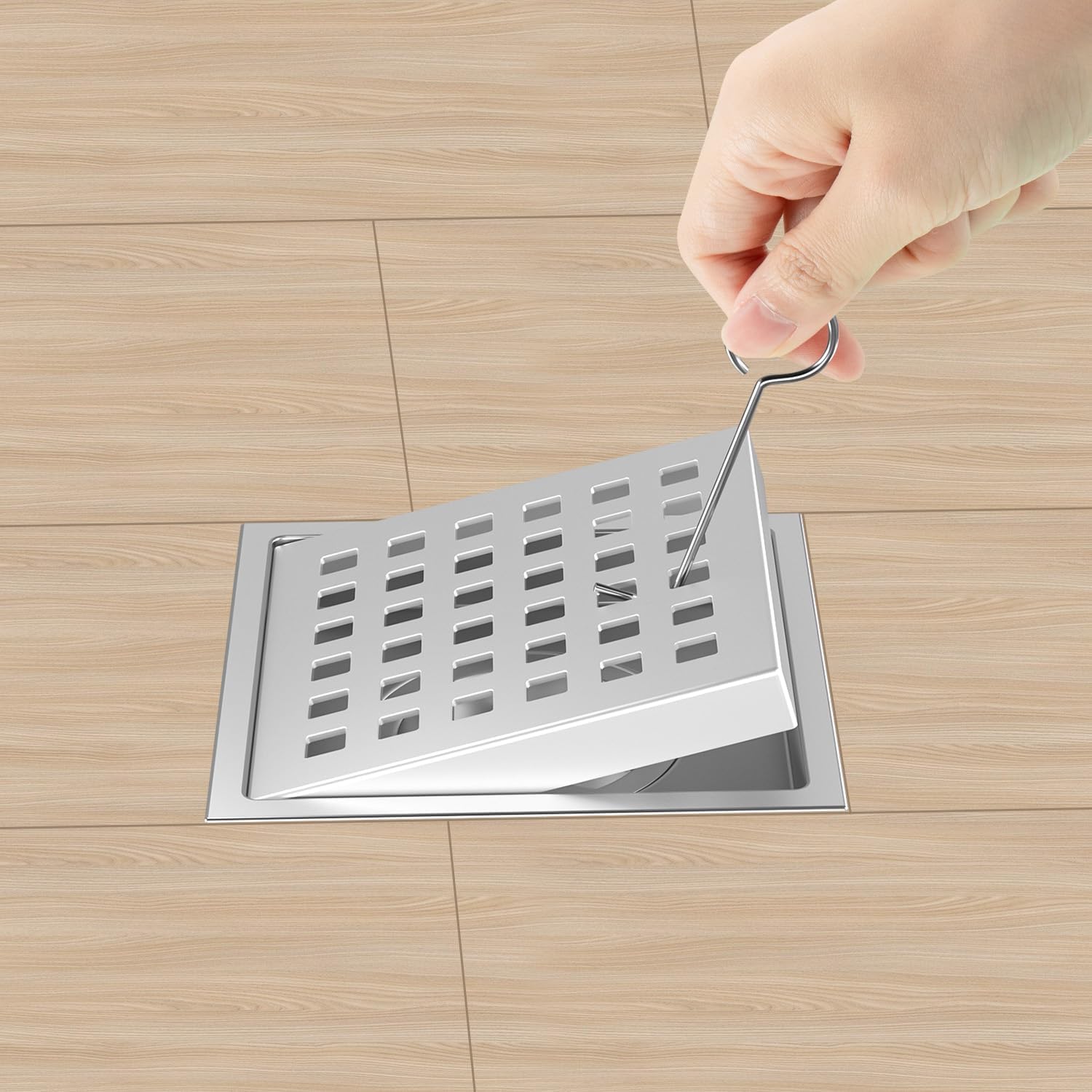 - 4" SHOWER DRAIN: 4-3/8 IN square shower drain fits for 2 inch central outlet. High flow design grate to avoid ponding