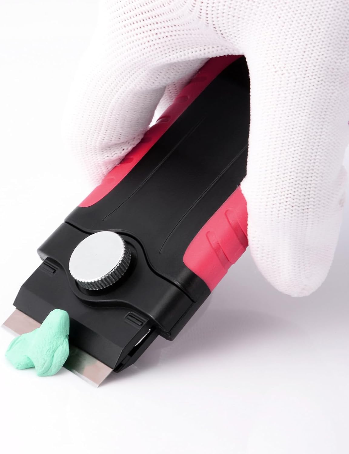 - Stove top razor blade scraper with safety cap that you can put the scraper into the pouch while working without any damage