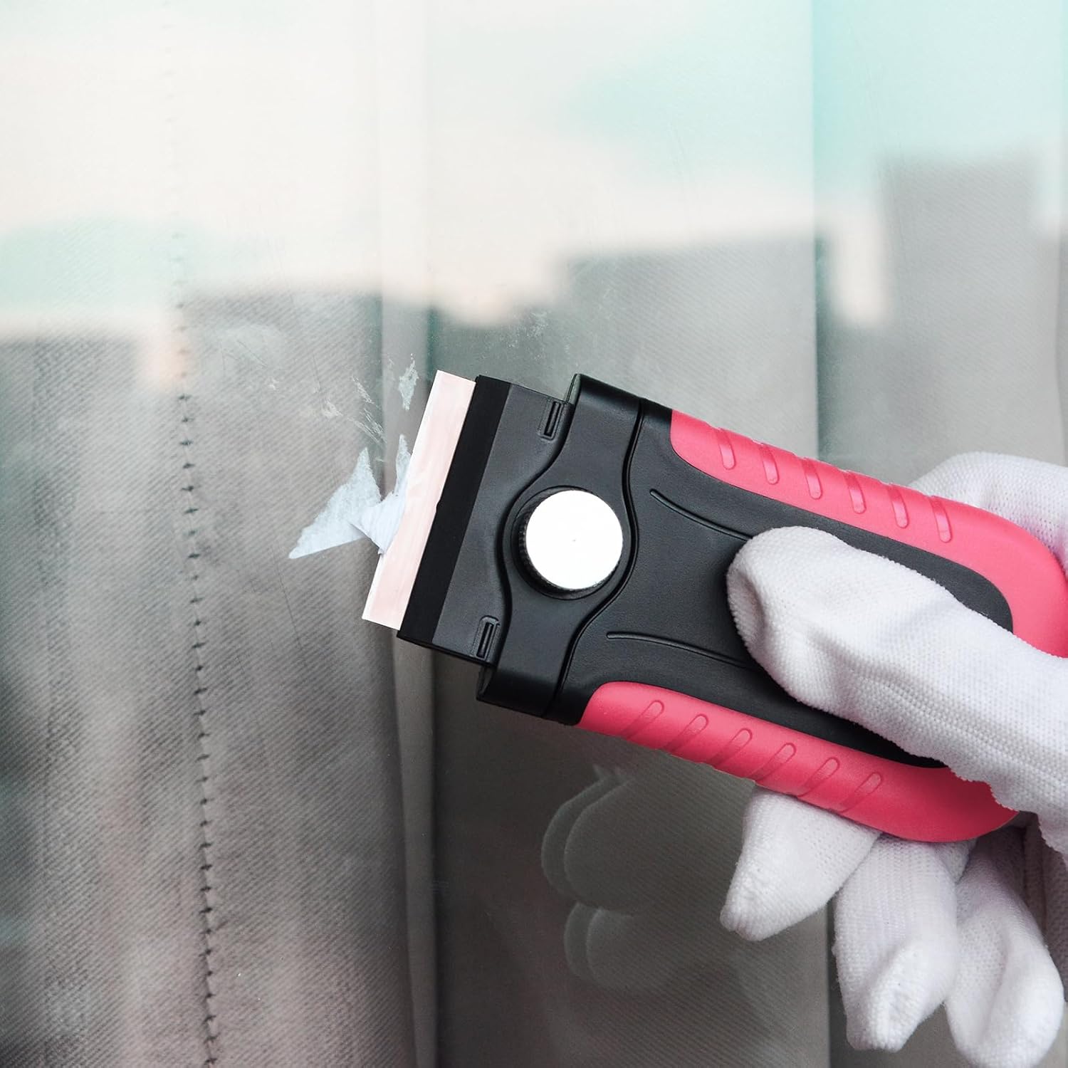 Gomake Razor Blade Scraper Tool with Blade Storage Container, Glass Cooktop Stove Scraper with 10PCS Stainless Steel Blades for Glass Clean,Paint,Old Label,Decal Sticker,Adhesive Remover-Pink