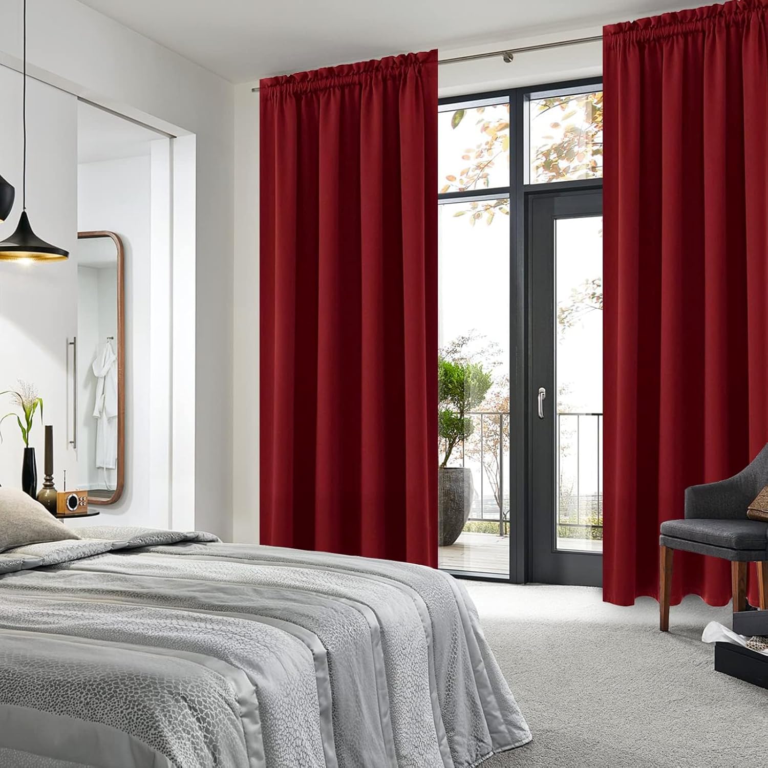 DWCN Blackout Curtains for Living Room Thermal Insulated, Energy Saving & Noise Reducing Bedroom Curtains, Amaranth Red, W 70x L 84 Inch, Set of 2 Rod Pocket Curtain Panels