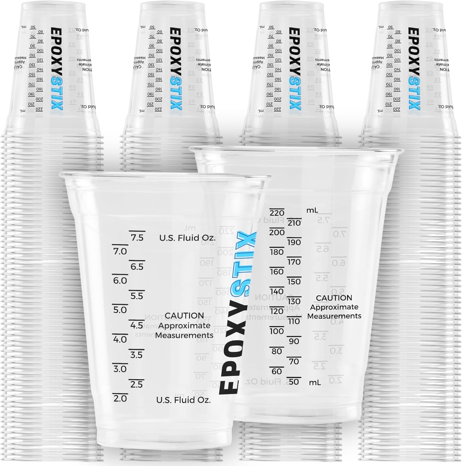 - BANG FOR YOUR BUCK - Includes 250 10oz PET Mixing Cups (measurement lines to 7.5 oz, holds 10oz of liquid), Whether You're A Professional Painter, Resin Hobbyist, or Craft Expert, The EpoxyStix Graduated Mixing Cups Are All You Need To Get Started!