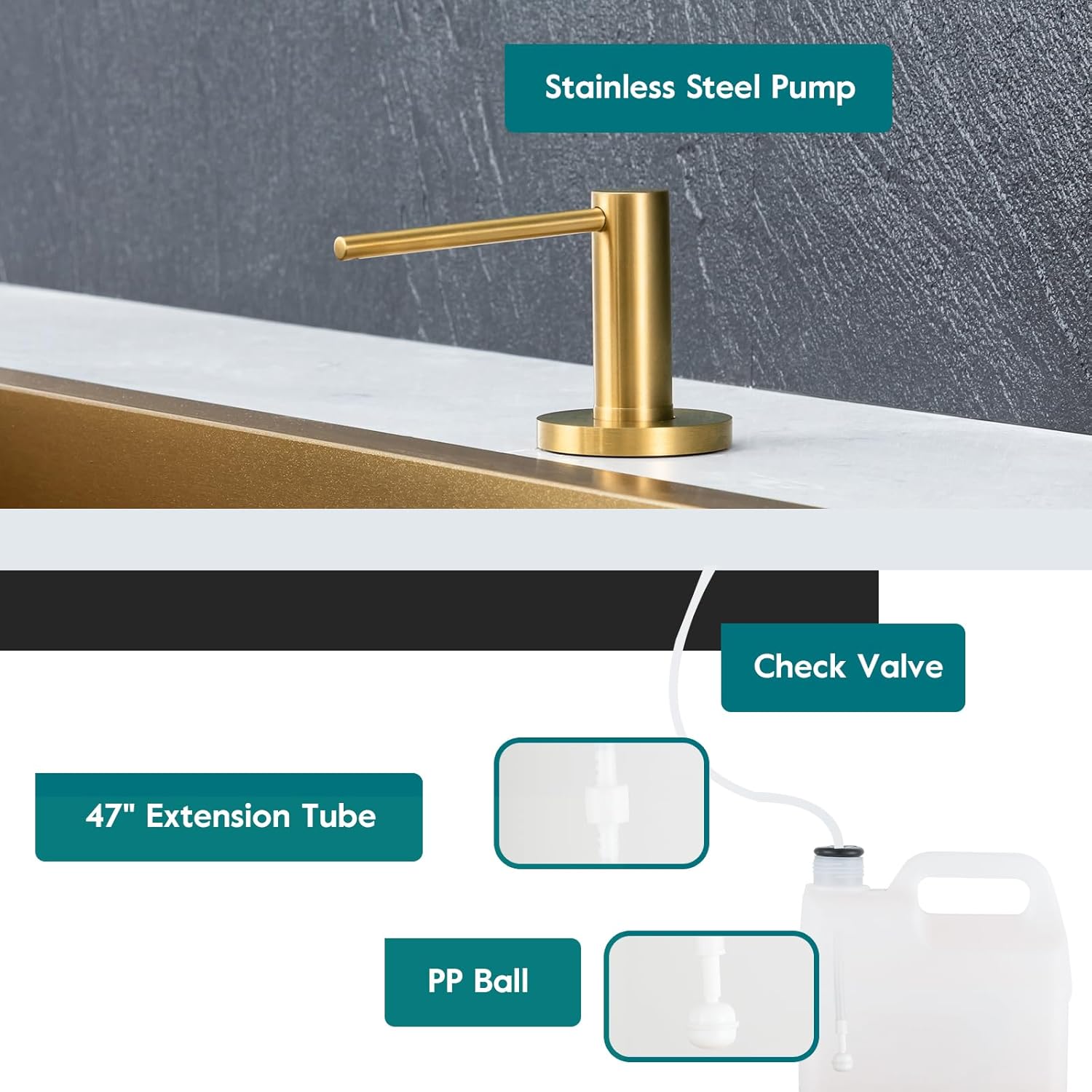 Gappo Soap Dispenser for Kitchen Sink Champagne Gold, Stainless Steel Countertop Pump, Built in Sink Soap Dispenser with 47" Extension Tube kit