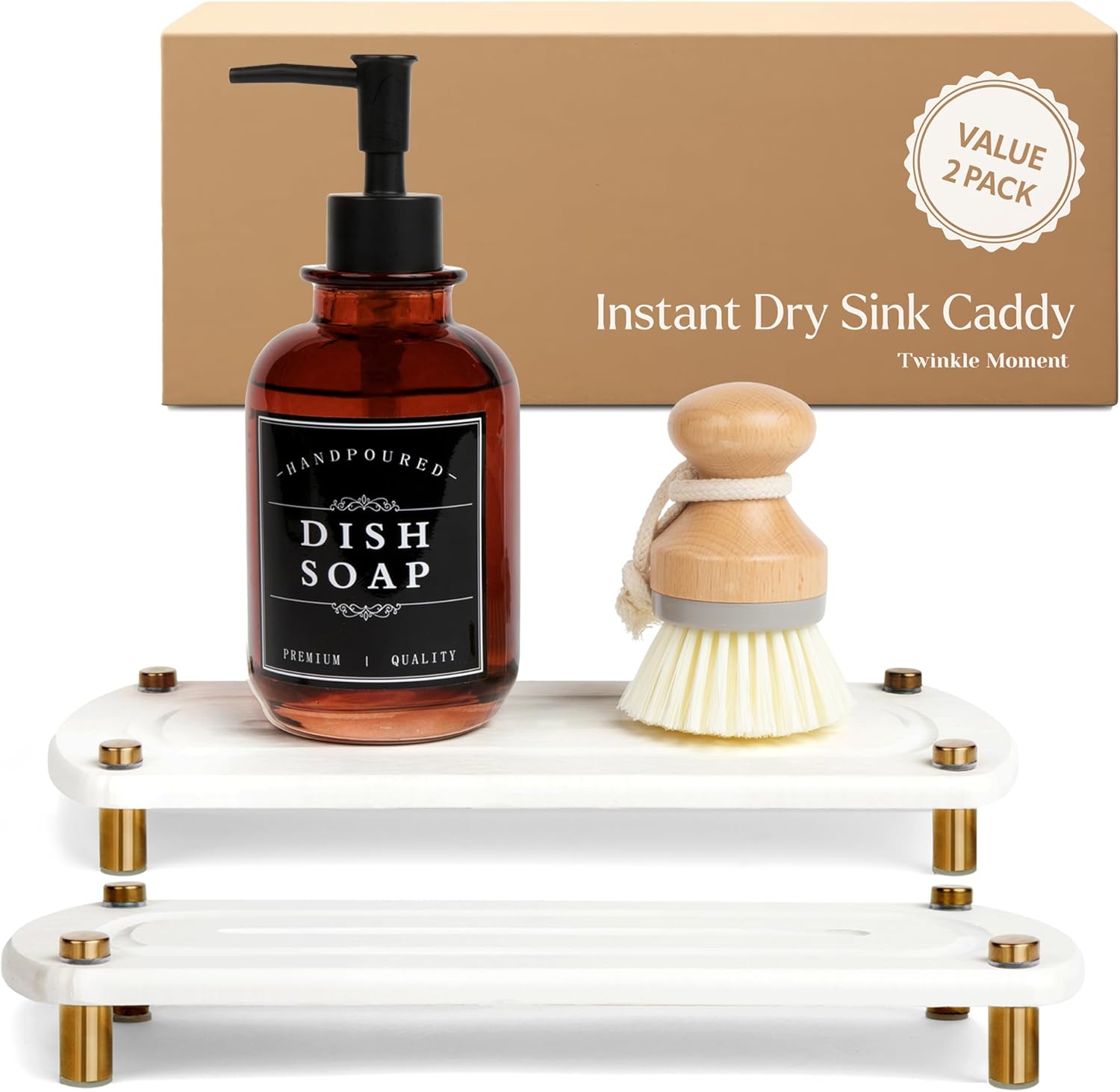 - Practical 2-Piece Value Set – Includes two white quick-dry trays with eight golden stainless legs, giving you a versatile 2-pack set to organize soap, sponges, or bathroom essentials in multiple spots such as the kitchen and bathroom