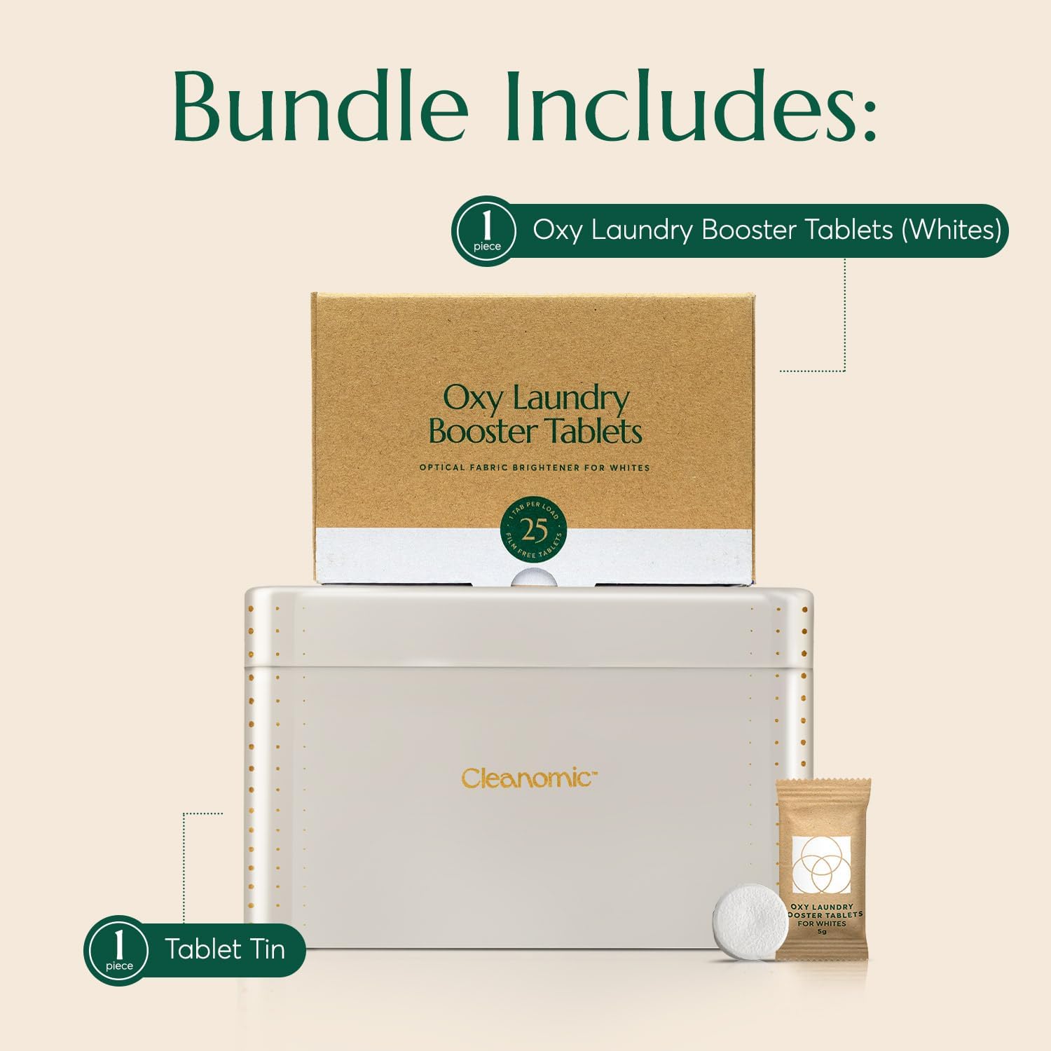 Cleanomic Oxy Booster Tablets (Whites) and Tablet Tin Bundle