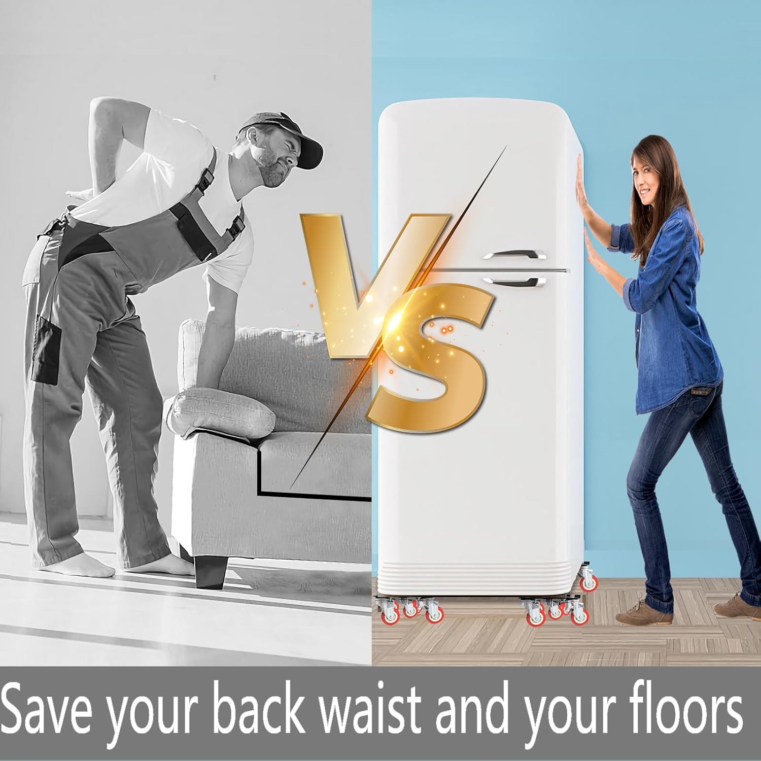 - High Material Furniture Dolly: It is absolutely the first consideration to ensure that the furniture and floor are not damaged. The furniture lifting crowbar is made of durable steel, and has a non-slip design. The surface of the 4 sliding rails is made of thickened carbon steel, which will not damage the furniture. Each slide is inlaid with 5 360° Rotation Wheels universal wheels, a total of 20 universal wheels, flexible and durable, up to 3335 lbs load-bearing, it will not damage the floor.
