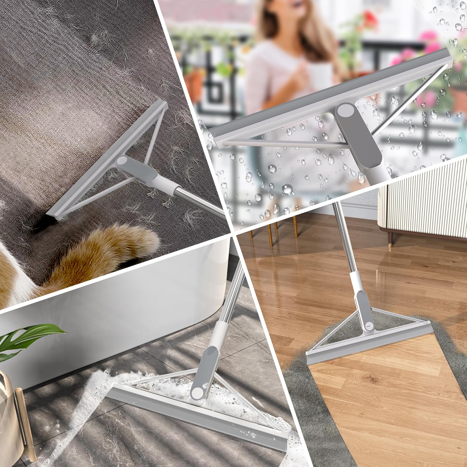 KOLLIEE Floor Squeegee Rubber Squeegee Broom Floor 61" Handle Adjustable Window Squeegee for Tile Floor Pool Deck Bathroom Window Floor Wiper