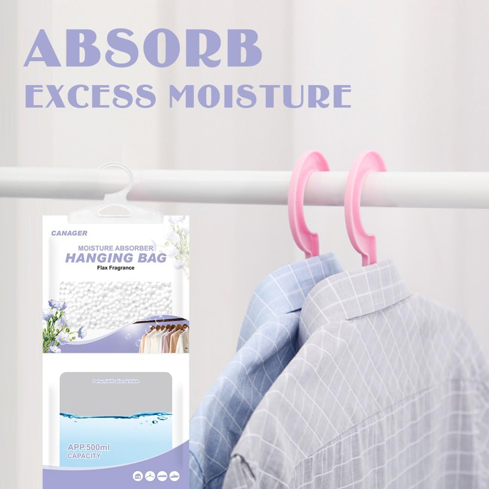 CANAGER Hanging Moisture Absorber, Flax Fragrance Moistureproof Desiccant Hanging Bag,Dehumidifier Bag (8 packs) Hanging Closet Dehumidifier Bags, Moisture Absorb 12.5 oz