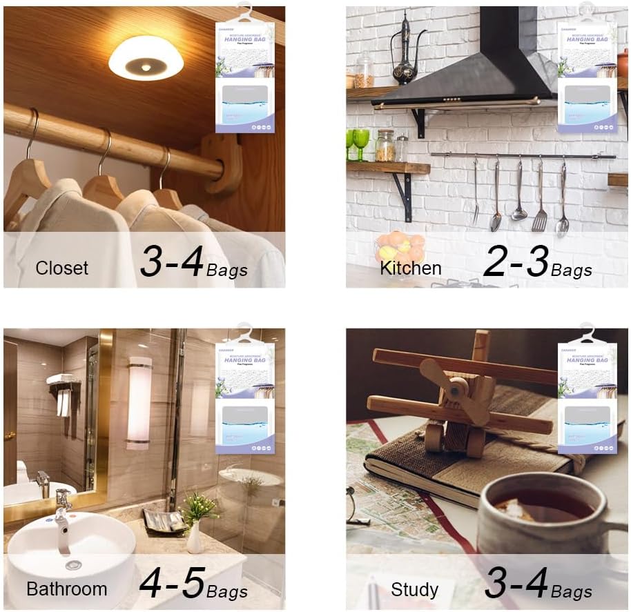 - 【Widely used】CANAGER dehumidifier bags have strong hook design, are suitable for most enclosed spaces, such as closets,basements,cabins,bathrooms,garages,laundry rooms and other enclosed spaces. Effectively protect your clothes and valuables from moisture.is perfect dehumidifier for closet,bedroom,kitchen,bathroom.