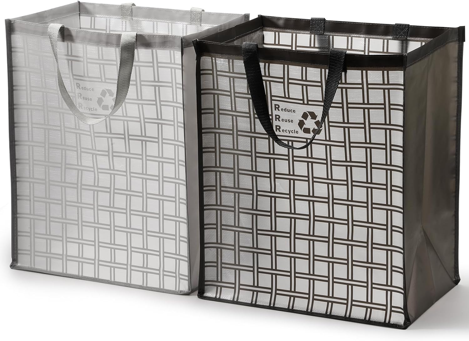 - STURDY: Recycling bin can is made of waterproof polypropylene, sturdy double stitch handle straps to ensure durable. They stand up on their own and easy to dispose of.