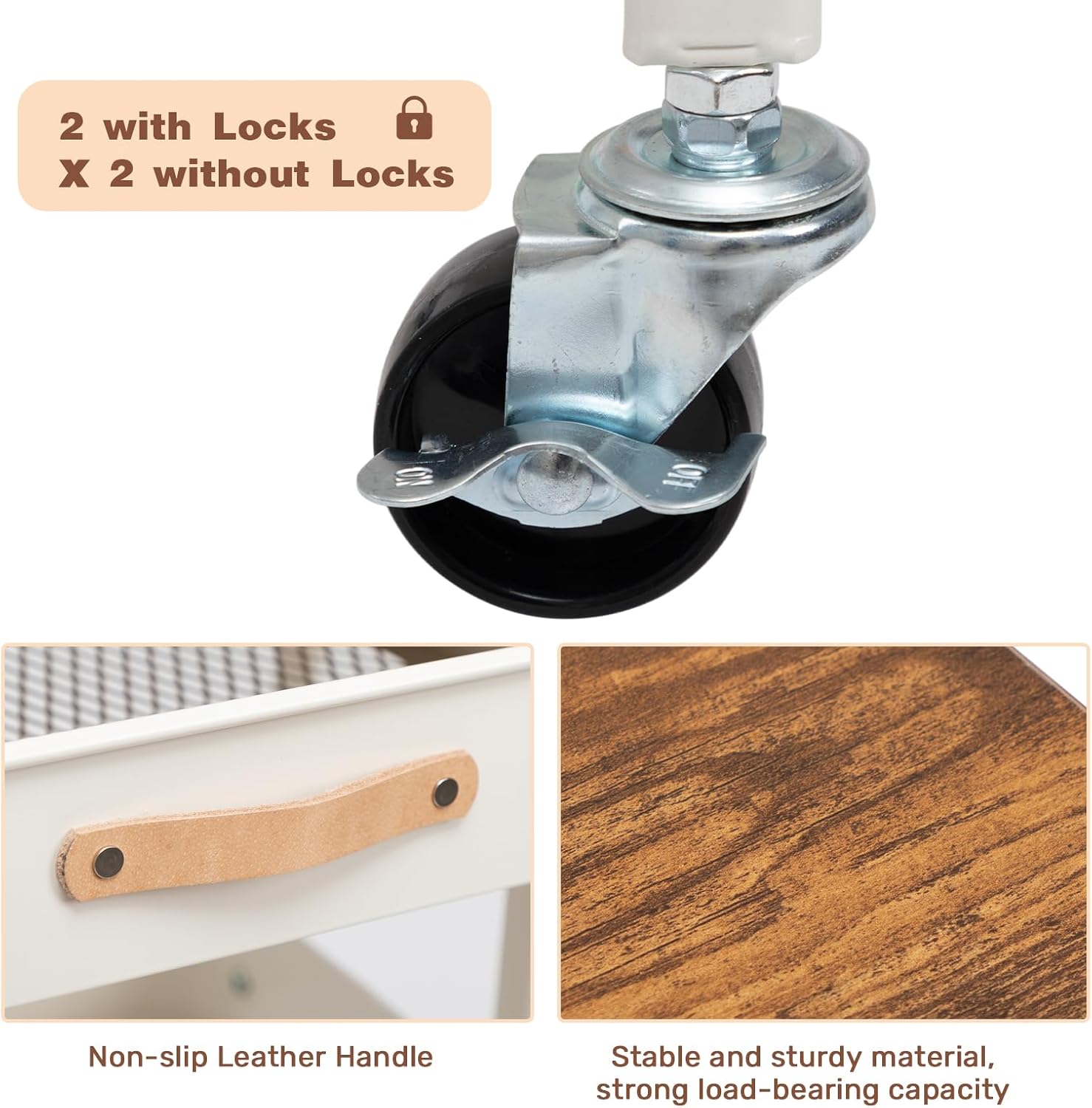 AGTEK Rolling Organizer Cart with Drawer, 3 Tier Movable Metal Utility Cart with Drawer, Mobile Trolley Cart for Home & Office, White