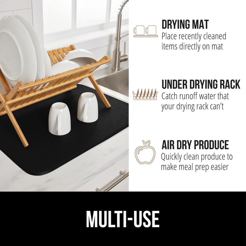 GORILLA GRIP Ultra Water Absorbent Microfiber Dish Drying Mat, 18x32, Quick Dry Thick Mesh, Slip Resistant Pad for Sink Dishes or Under Rack, Kitchen Counter Accessories, Machine Wash Mats, Black
