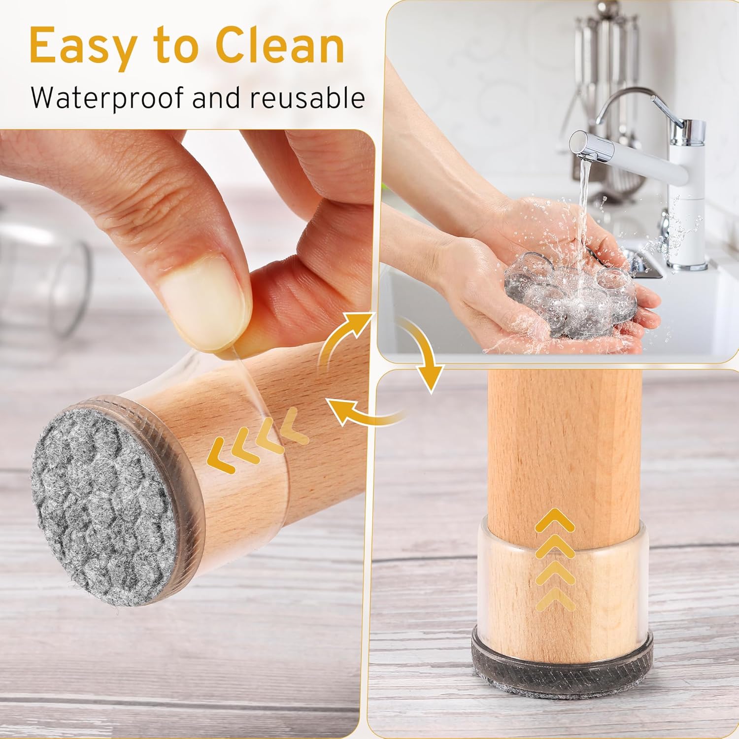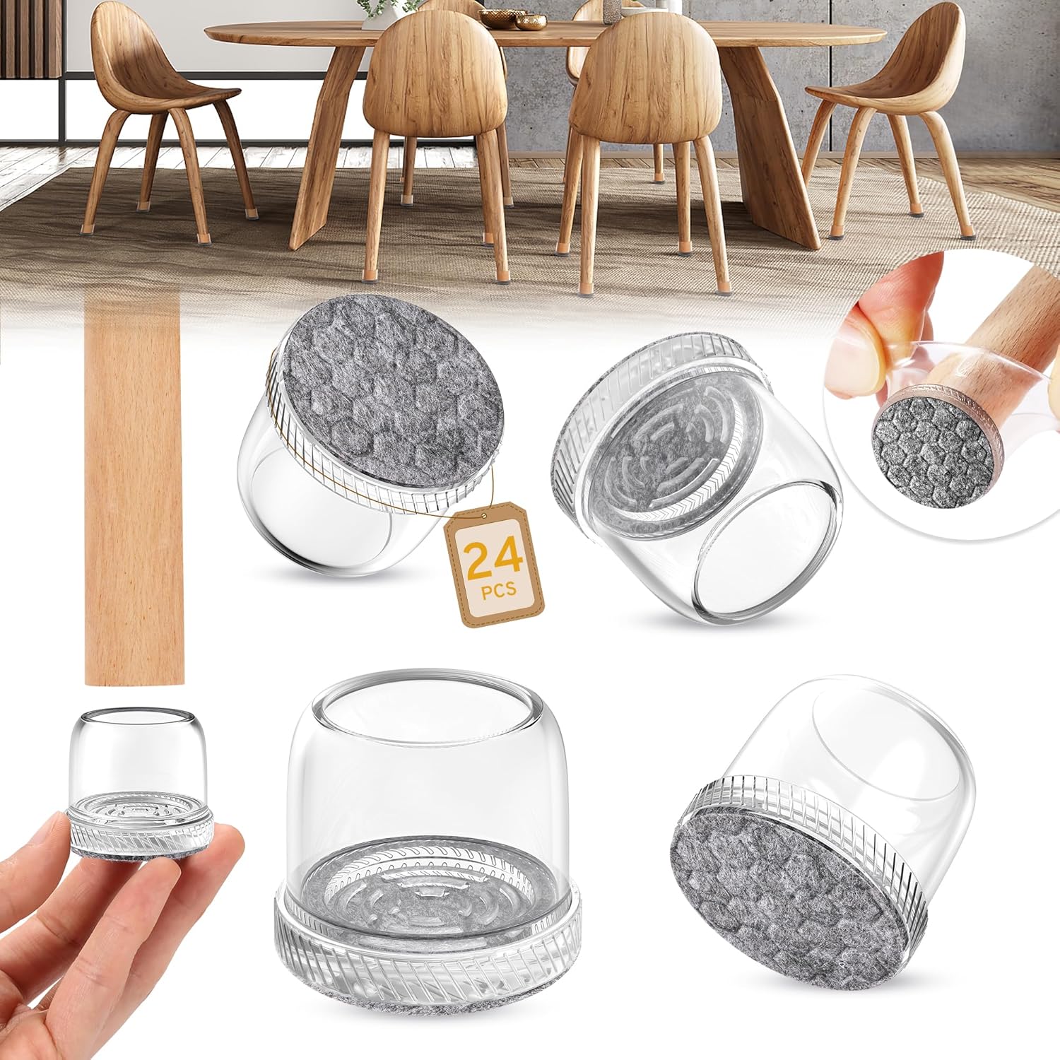 - ✅【Integrated Molding Process】Unlike traditional felt chair leg pads with glue or nails, we combine the felt and silicone into an integral part to prevent the felt pad from falling off during use. Additionally, the built-in bottom features a non-slip pattern to ensure that the chair sliders for wood floors stay securely in place without any risk of falling off.