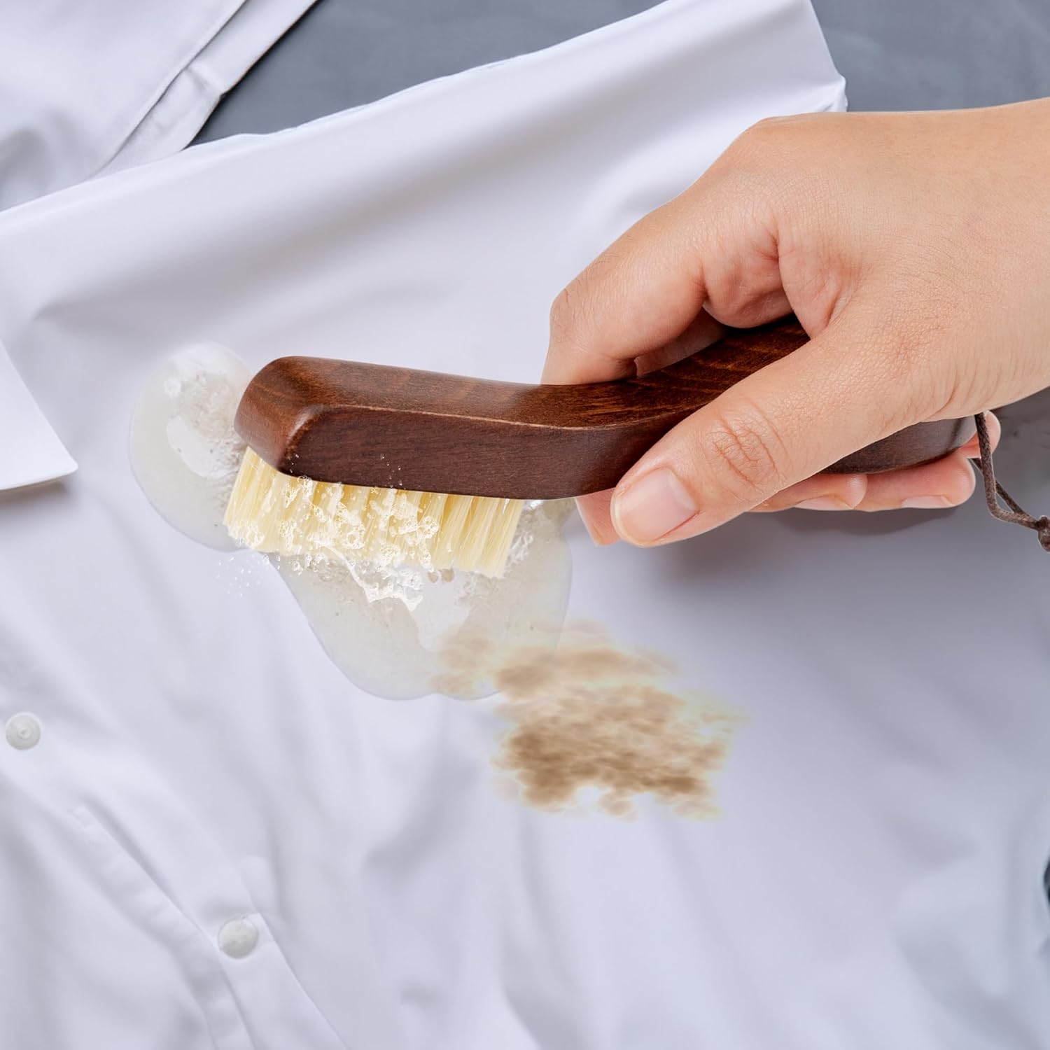 - Long-Lasting Natural White Boar Bristles: The boar bristles on this laundry stain brush are relatively stiffer compared to horsehair, making it excellent for removing spots and scrubbing out stains from various fabrics, including cotton, denim, velvet, polyester, nylon, and more. Unlike a stiff toothbrush, the soft white boar bristles won't damage or pill fabrics.