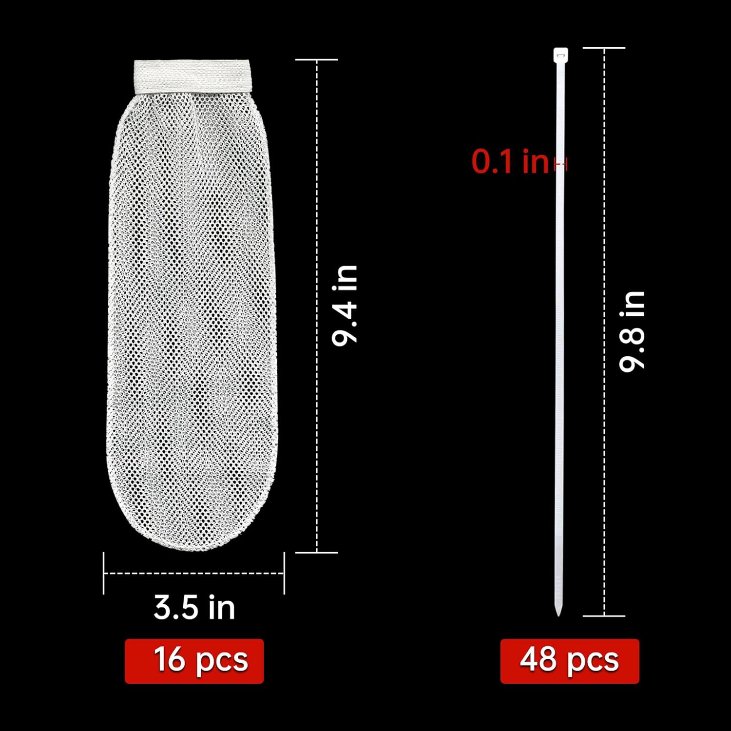 64-Piece Lint Trap and Cable Ties Set for Washing Machine, Includes 16 Nylon Mesh Lint Traps and 48 Cable Ties, Easy and Effective Lint Filtration (White)