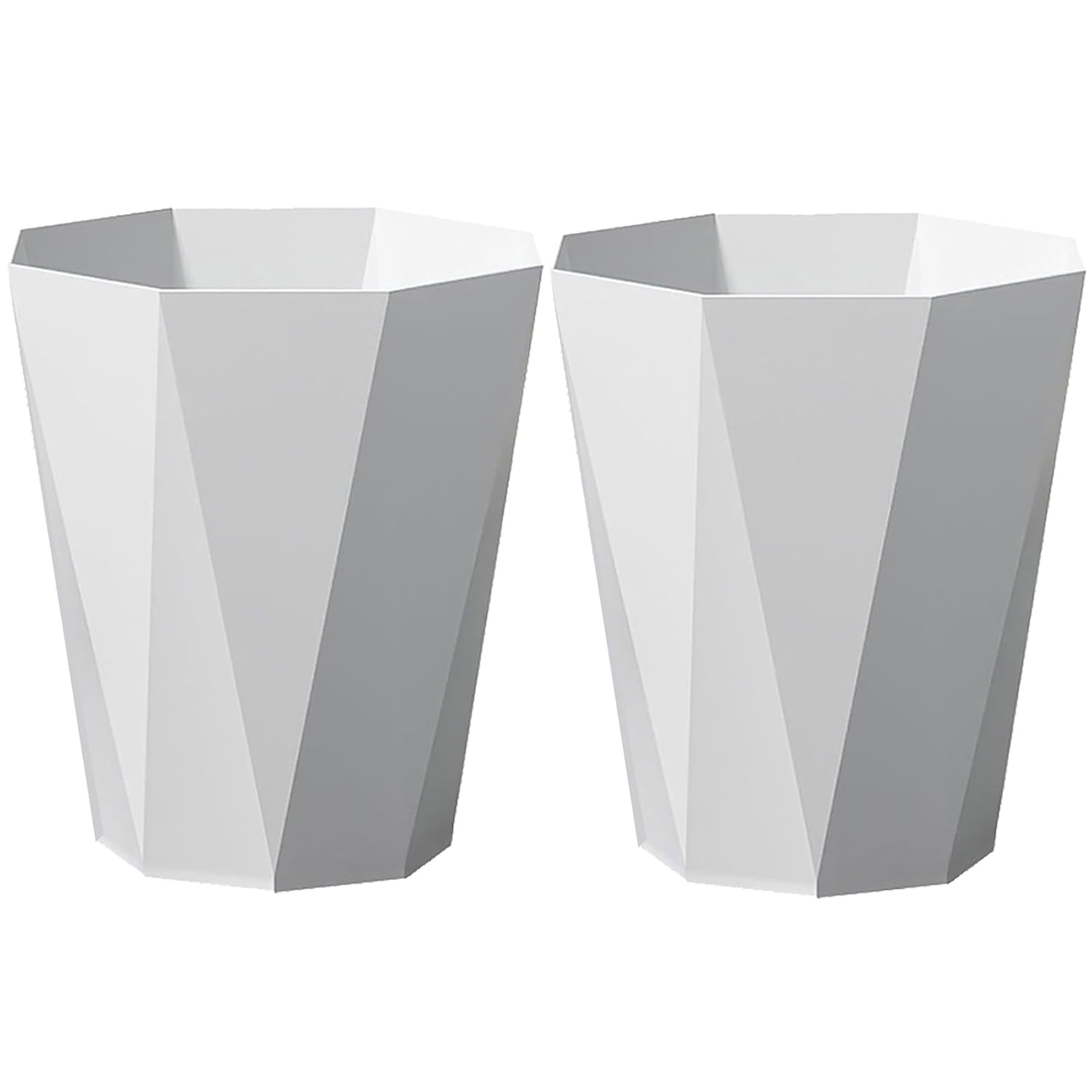 Small Bathroom Trash Can 2 Pack Garbage Can 1.8 Gallon Waste Basket for Dorms Toilets Bedrooms Offices, White