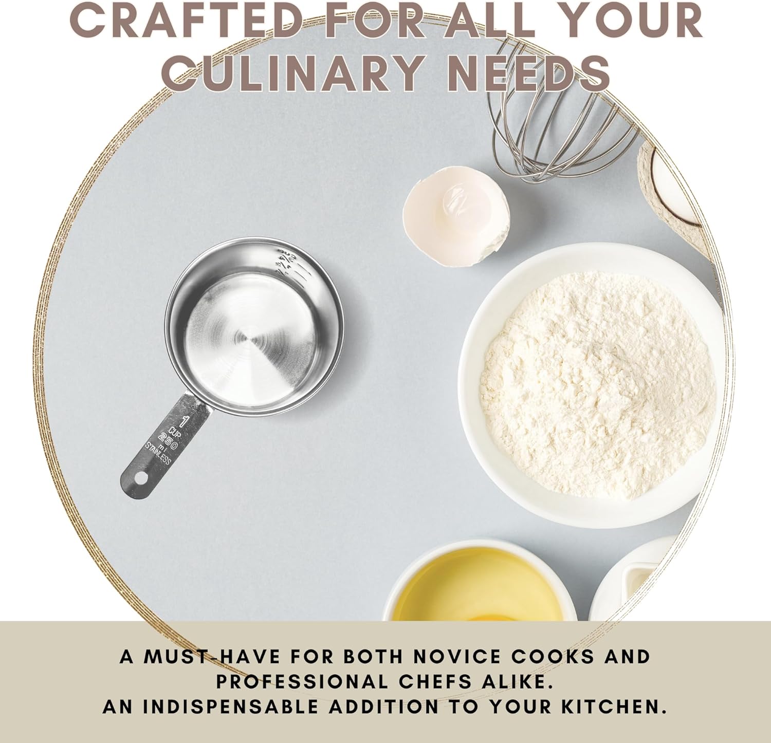 - Precise Measurements - Etched with both 1 cup (imperial) and 240 ml (metric) units, this stainless steel measuring cup provides accurate, reliable measurements for every recipe. The markings are permanently engraved into the metal and won’t fade or rub off, even with constant use or dishwasher cleaning. Use it to measure flour, sugar, oil, broth, or rice. It’s also great for portioning dry dog food, prepping meals, and organizing pantry goods with precision.