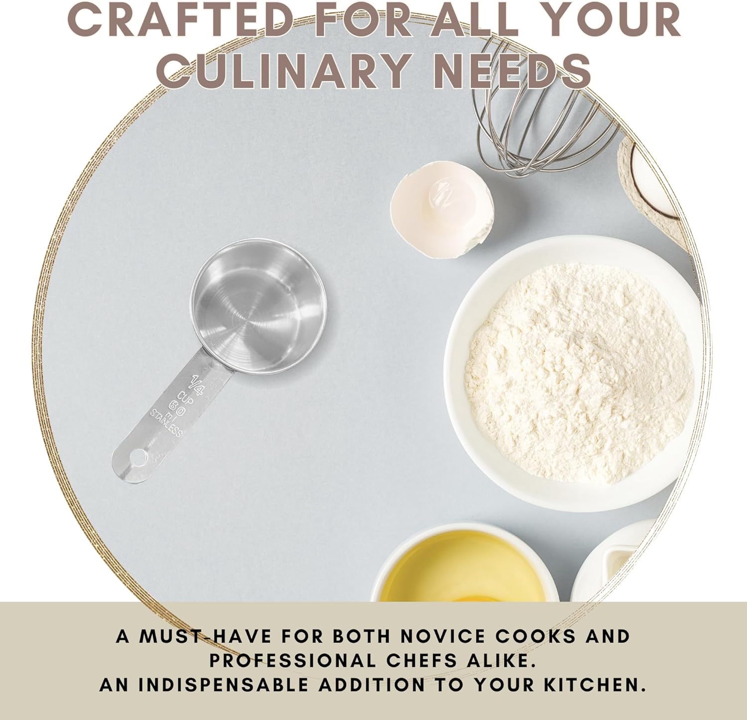 - Durable Stainless Steel - Built from premium, extra-thick food-grade stainless steel, this 1/4 cup measuring cup is made to endure daily use in busy kitchens without bending, breaking, or wearing down. It resists rust, corrosion, warping, and dents—even when scooping dense or sticky ingredients like brown sugar, peanut butter, or thick batters. The seamless one-piece construction ensures lasting performance and reliability. Great for cooking, baking, meal prep, or portioning dry dog food.