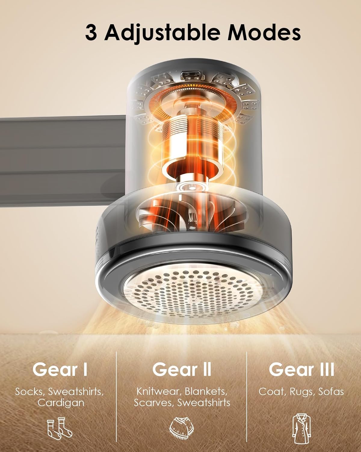 - 2. Efficient Lint Shaver for Furniture - Our sweater lint remover comes with 3 speed settings (I/II/III). Firstly, this fabric lint pill shaver mesh cover has 3 sizes of holes, which can quickly clean up hair balls of different sizes. Secondly, compared to the traditional 3-leaf blades, we equip with 3pcs rust-proof 6-leaf blades, which can greatly improve the working efficiency of the fabric lint remover and meet the needs of all fabric surfaces