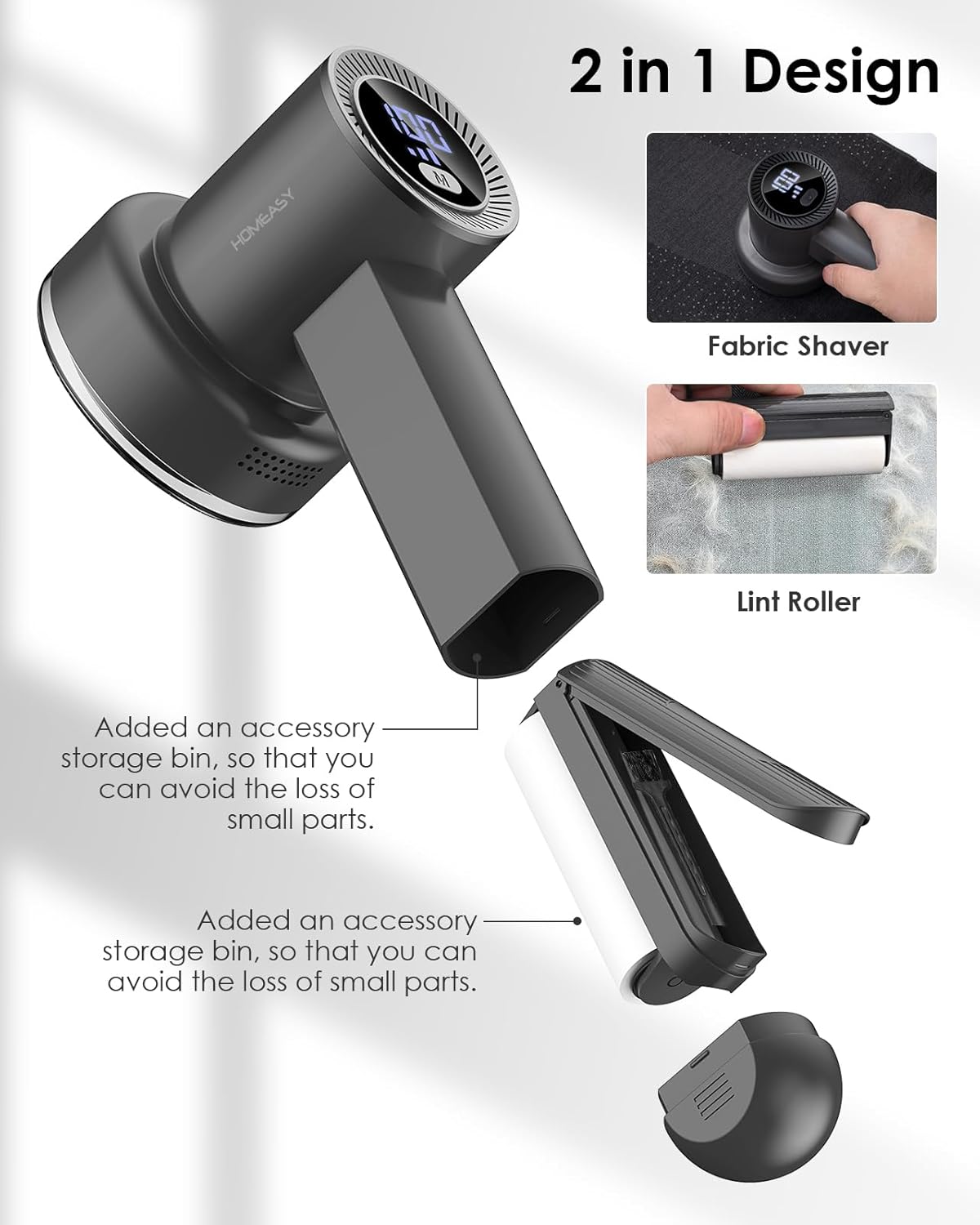 Fabric Shaver Fuzz Remover Rechargeable, HOMEASY Electric Lint Remover Shaver with 3 Blades & LED Digital Display, Sweater Couch Fabric Pill Shaver for Sweater, Couch, Furniture (Dark Gray)