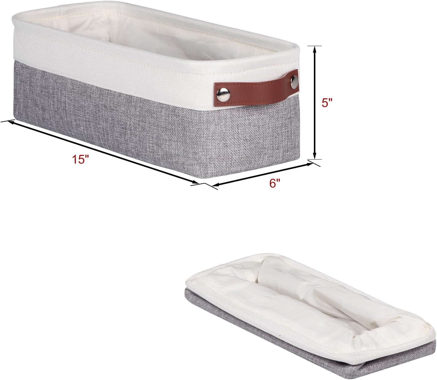 - 【 Narrow Baskets Size】- Dimensions(each): 15(L) x 6(W) x 5(H) inch/38x15x13cm.Small long storage baskets make full use of narrow spaces,great for storing socks,underwear, decorations,makeup,office supplies,keys,small Items.