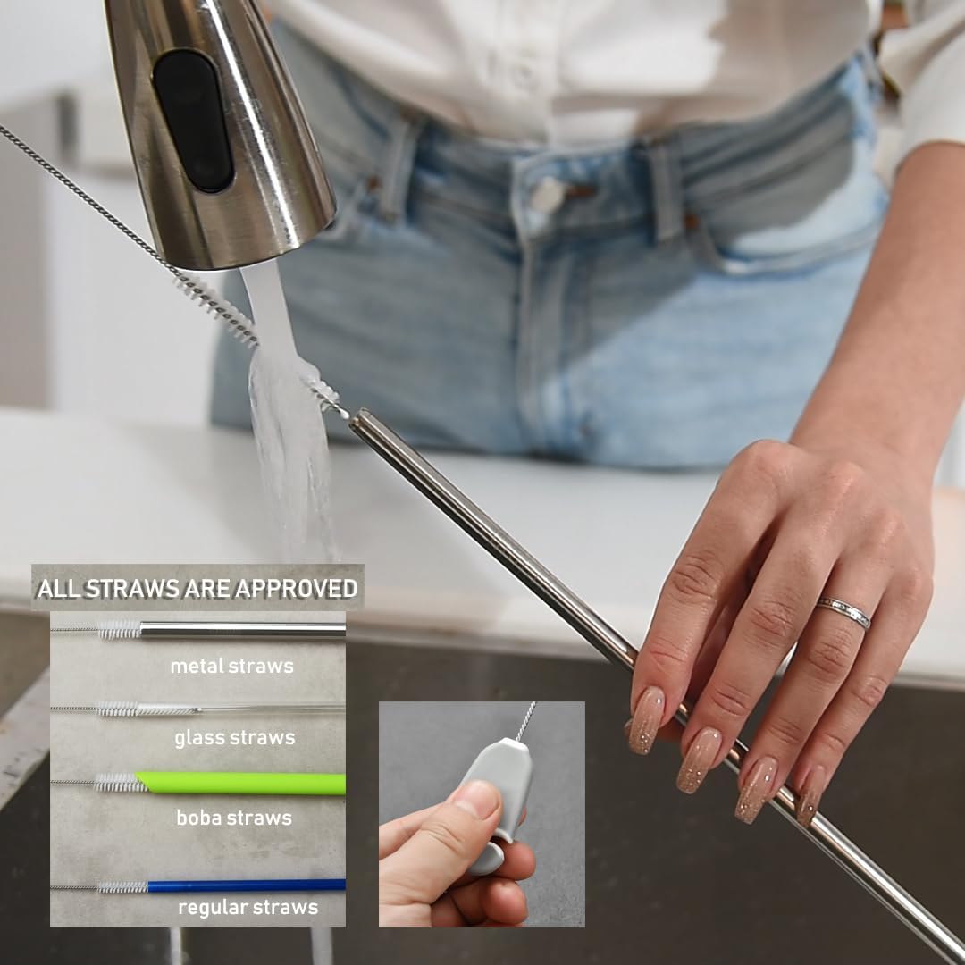 - WIDE & SKINNY STRAW BRUSH - 12 inch long, 12 mm diameter straw brush and 9 inch long, 7 mm diameter straw brush can help you clean more than 20 inch long straws, fat boba straws, regular straws and skinny straws.