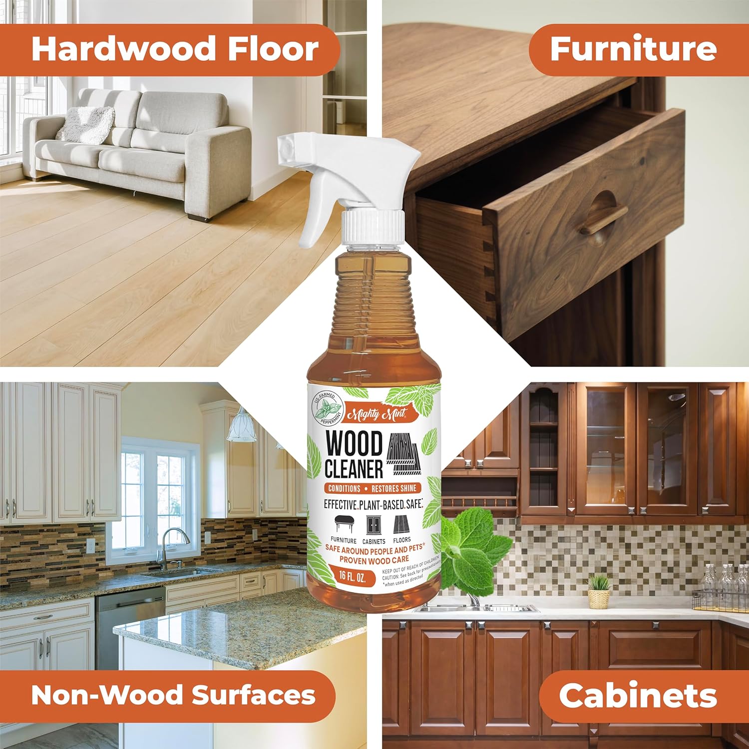 Mighty Mint Wood Cleaner and Conditioner, Spray Cleans and Renews Wood, Natural Peppermint Scent, 16oz