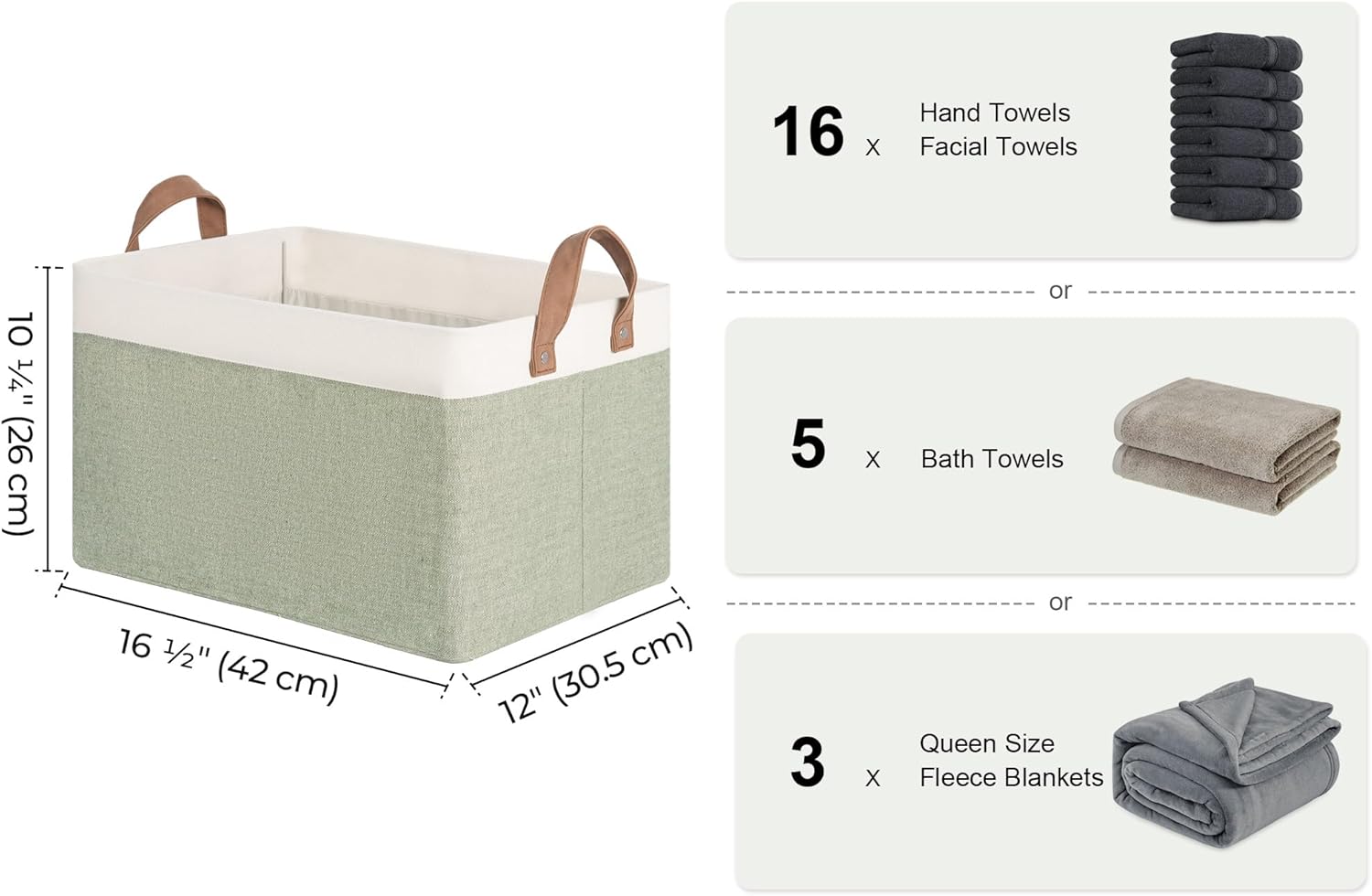 - Store Plenty: These large, durable storage baskets are perfect for storing a variety of items, including clothing, towels, blankets, pet supplies, books, magazines, albums, DVDs, office and craft supplies, etc.