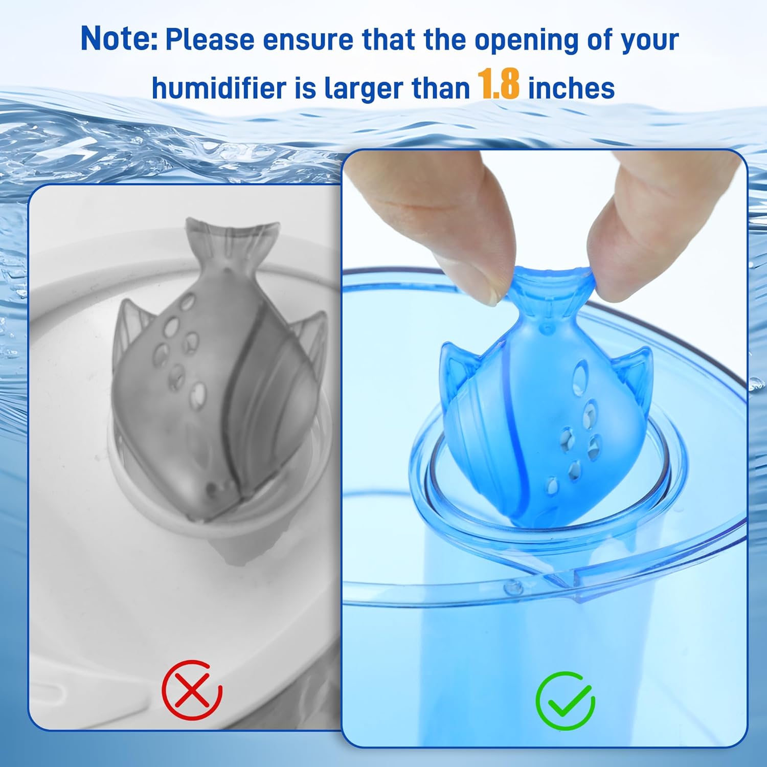- ππ’π π£ππ§ππππ π π’ππππ¦ - The versatile humidifier cleaning fish is suitable for almost all home humidifiers, vaporizers and steamers including evaporative humidifiers, ultrasonic humidifiers, cool mist humidifiers and warm mist humidifier. Warm tips: The opening diameter of the humidifier should be at least 1.8 inches, please check if the opening of your humidifier is large enough. Meanwhile, it can be used in general purpose humidifiers with a tank capacity of 1 gallon and above