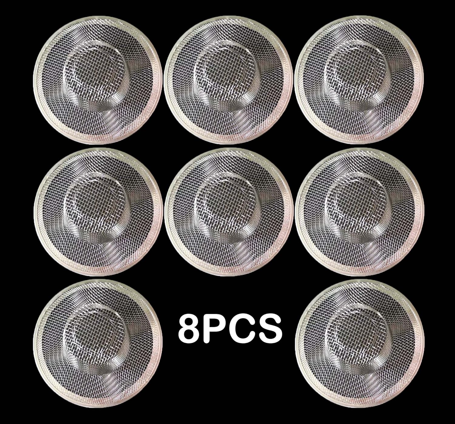 - Set of 8 Kitchen Sink Strainer: Mesh sink drains strainers, shower mesh drain cover; you will receive 8 pcs stainless steel sink drain strainer basket, drain basket, whose top diameters are 4.41'', making them a perfect fit for most kitchen bathroom sinks to effectively capture hair and prevent small items from accidentally going down the drain (rings, earrings etc). You would love these bathroom sink hair catcher, bathroom sink drain, bathtub drain screen mesh.
