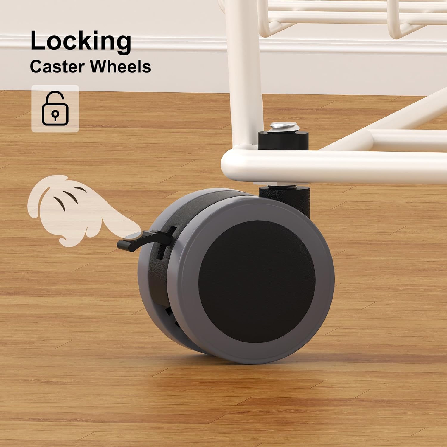 - 【Easy to Assemble】The previous wheel defect problem has been solved! No hassle setup. Simply slide each Storage Basket bottom into the top of another, you could set the rack very well, apply the 4 upgraded wheels according to your needs. Two of the casters are lockable, to keep the storage organizer securely in place when needed. Picture instructions also included with product