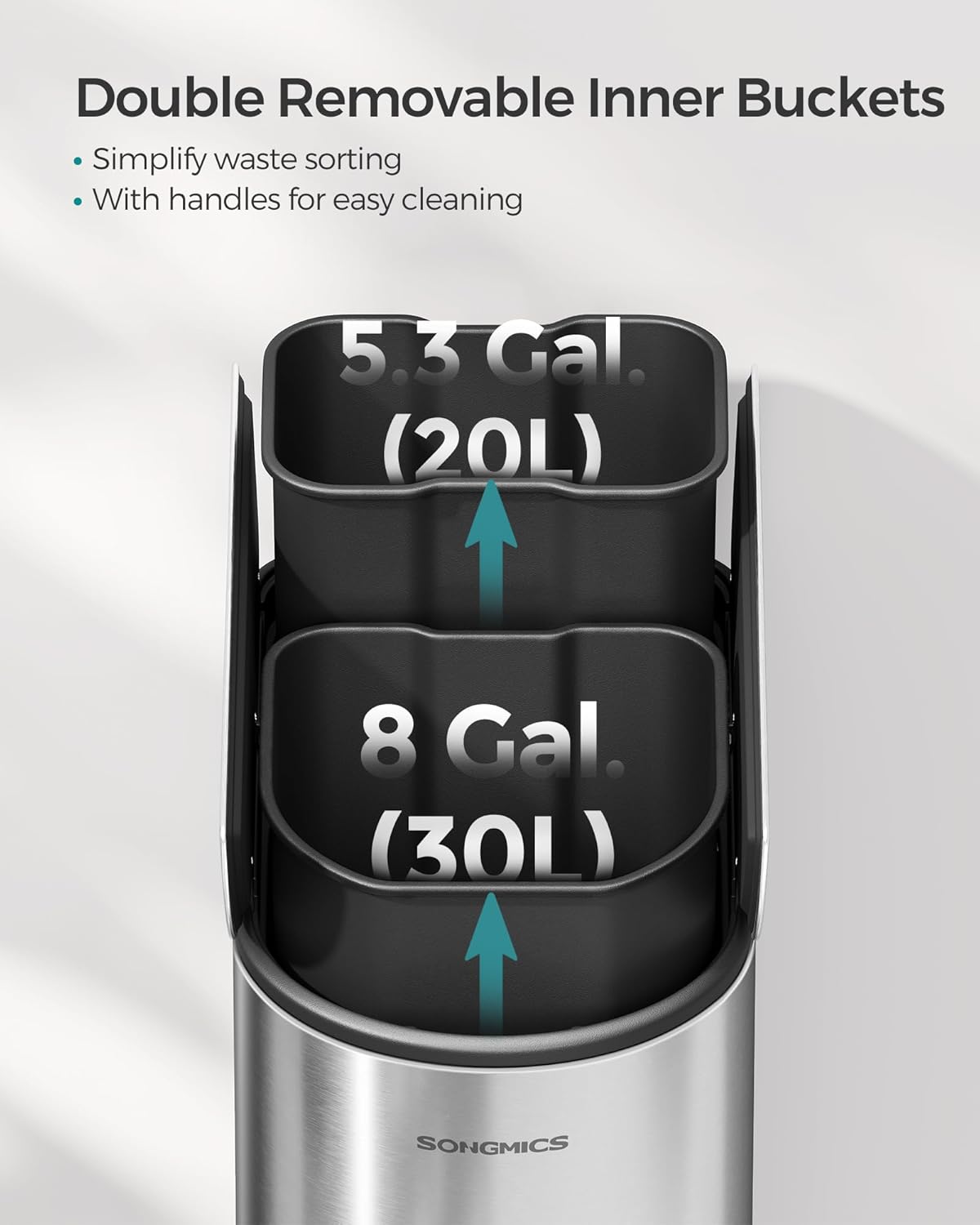 - [Easy Bag Replacement] The 2 inner buckets with inner handles can be removed for easy cleaning and liner changes, and they also keep the bag securely in place and hidden from view