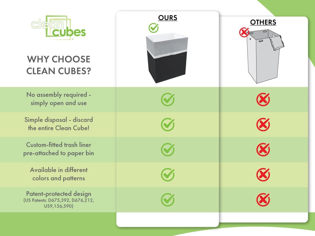 - ✅ 【EFFORTLESS CLEANUP & DISPOSAL】Simply unfold, use, and toss — keep your event clean and mess-free without extra effort. Clean Cubes are disposable recycling bins and trash cans with a patent-protected design and custom-fitted trash liner in each bin.