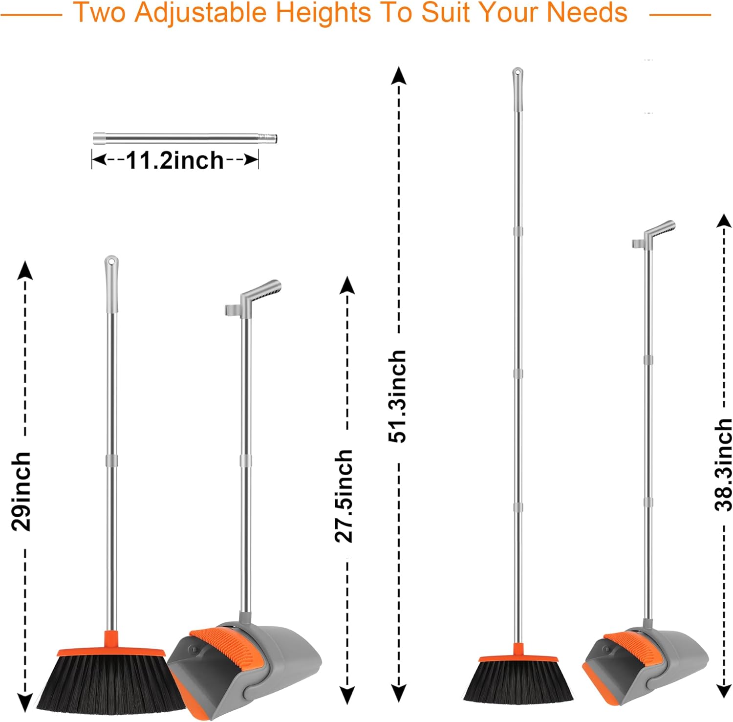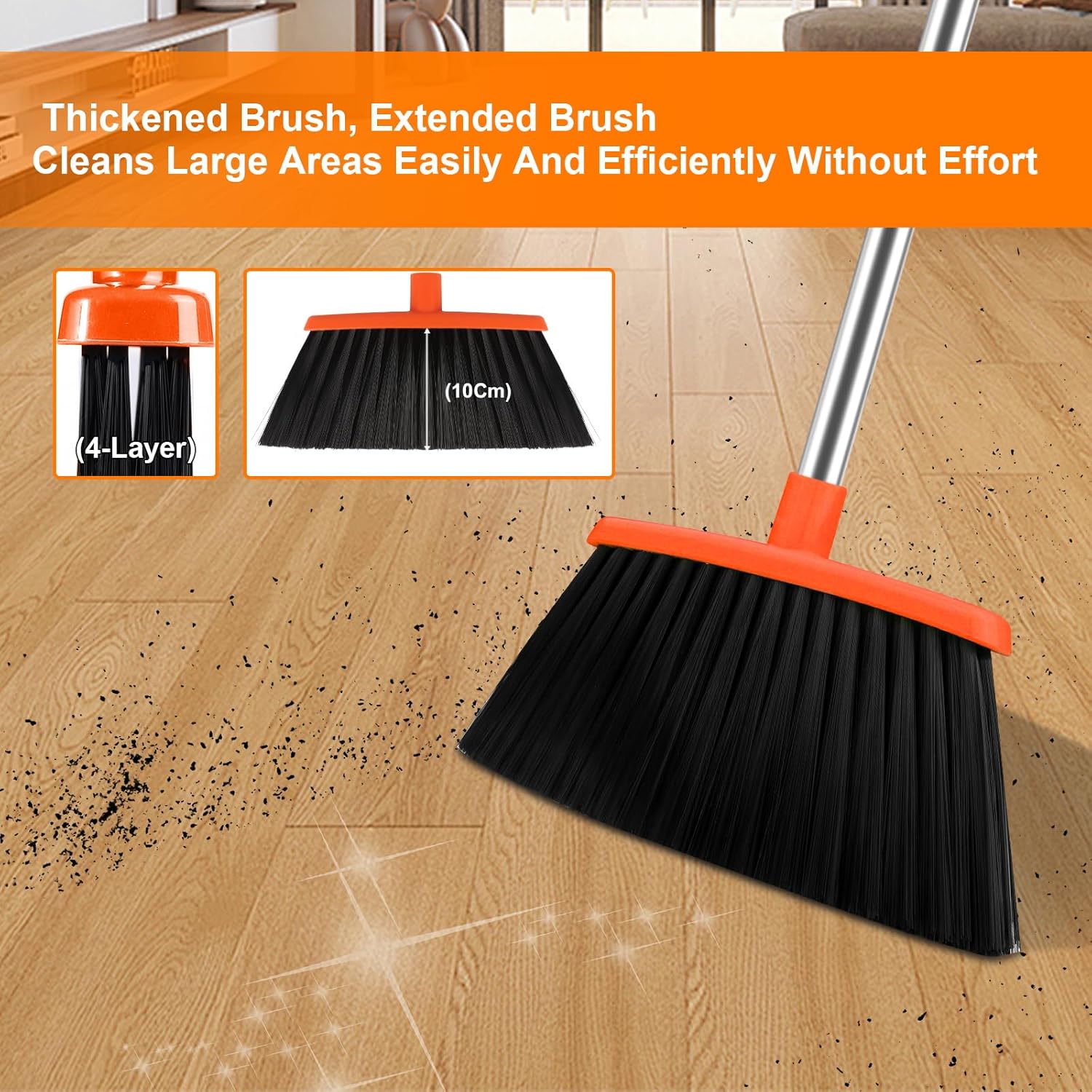 - [Improved Broom and Dustpan Combo Set] Upgrade your cleaning routine with this enhanced combo, a flexible and valuable addition to your home cleaning tools. Featuring a sturdy stainless steel handle and a roomy dustpan, this set is perfect for efficient cleaning. The soft rubber lip forms a tight seal between the floor and dustpan, ensuring a mess-free experience. Sweep confidently with this broom and dustpan set, designed to eliminate ash leakage.