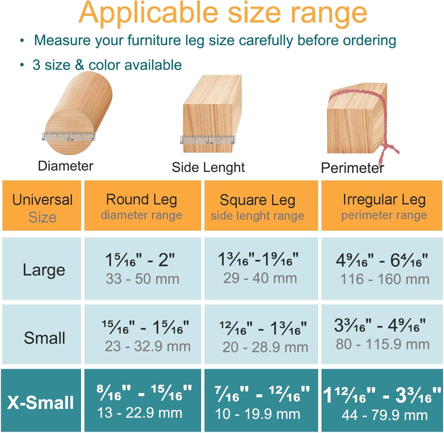 - 【Common size】 Suitable for chair foot with perimeter of 1-12/16" to 3-3/16" (44-79.9mm). Round diameter of 8/16" to 15/16" (13-22.9mm). Square length of 7/16” to 12/16" (10-19.9mm).