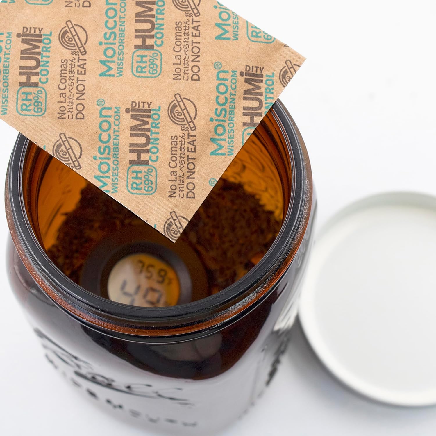 - 【Packed with Kraft Paper】: Humidity Control Packet is packed with environmentally friendly and biodegradable kraft paper, ensuring safety and harmlessness. Kraft paper packaging material is not only biodegradable and recyclable but also offers excellent tear resistance, breathability, and dust-free properties. Buy using humidity pack you don't have to worry about adding water to the box or using a hygrometer anymore. Your box or jars naturally keeps its humidity at 69%RH.
