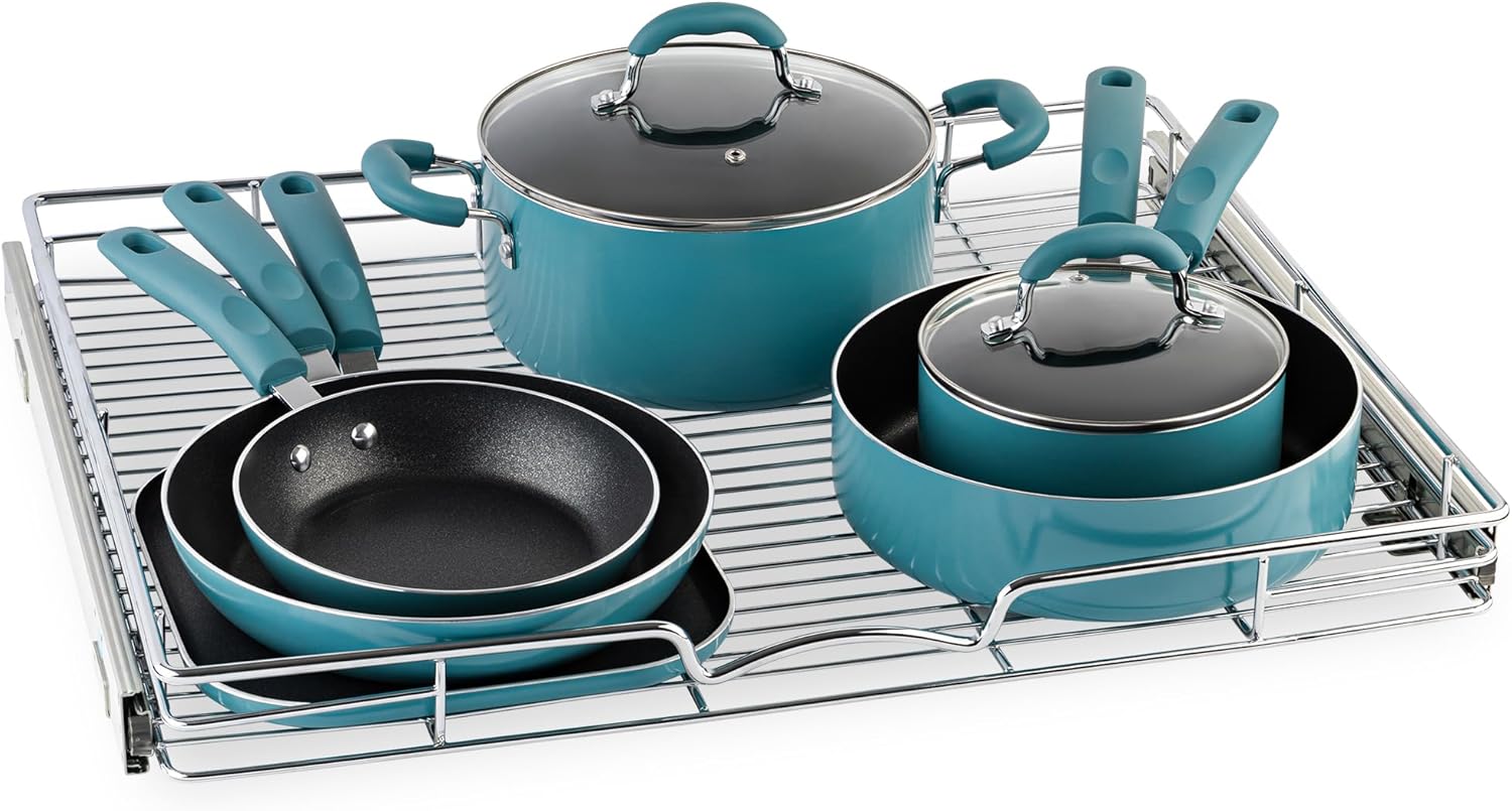 - SMOOTH SLIDE-OUT DRAWER: This kitchen cabinet roll out shelf is manufactured with a pull out system that slides out ultra-smooth. Other than other drawer organizers, our Pull Out Cabinet shelf slides out all the way, providing you with easy access.