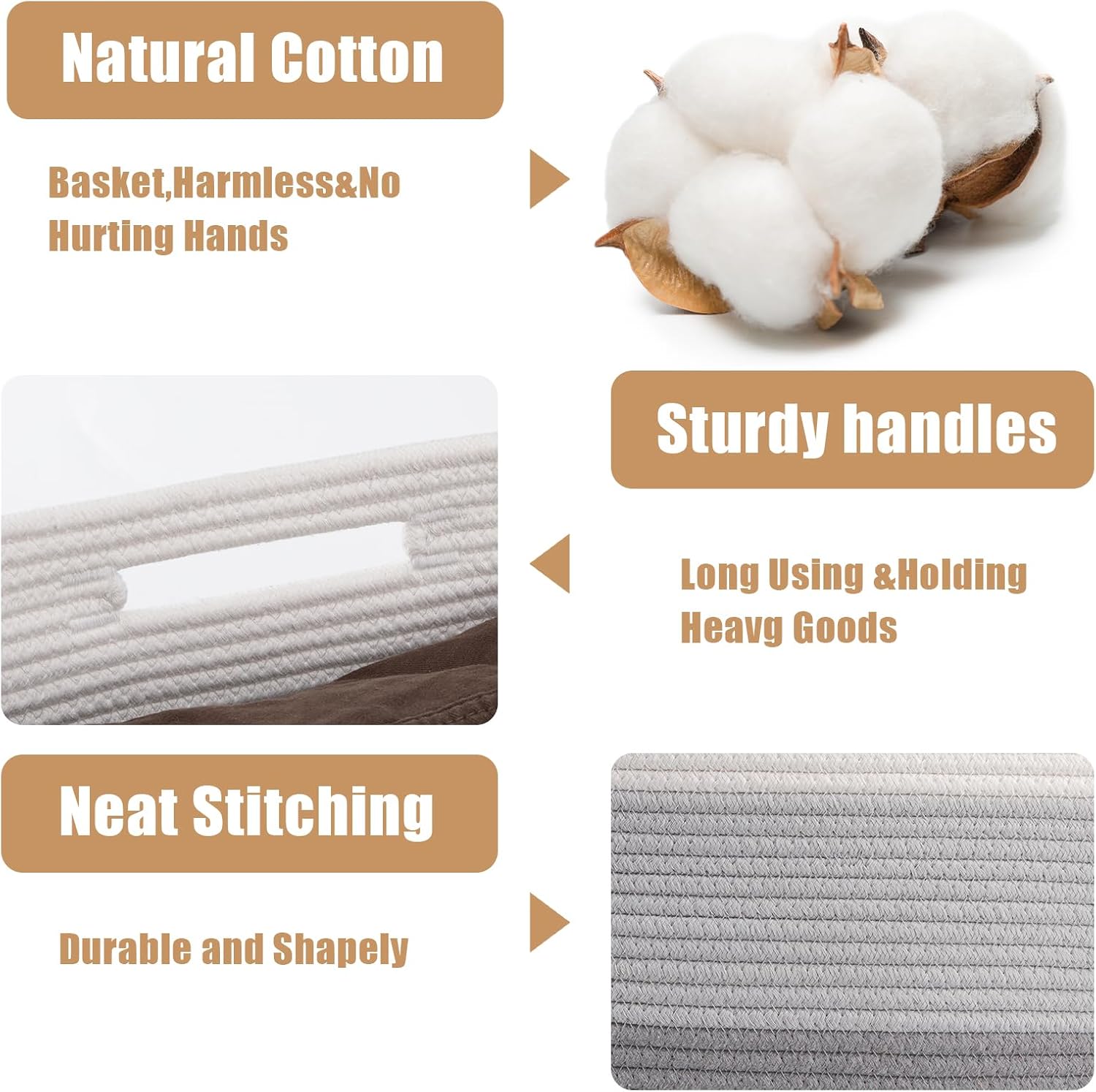 - Sturdy & Long-lasting: Soft storage baskets are made of high quality natural cotton rope, which are exceptionally durable & sturdy and firm enough in regular use. They can keep their shape even with heavy loads