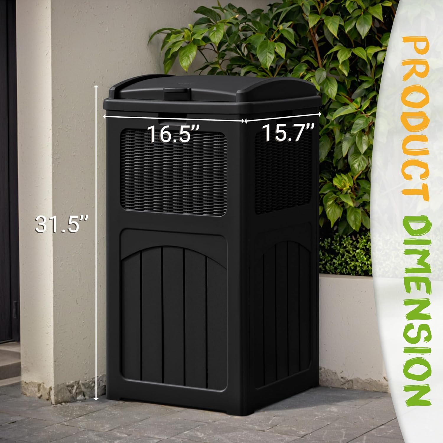 YESHOMY 33 Gallon Resin Outdoor Trash Can with Lid, Hideaway Waterproof Patio Garbage Bin, Black