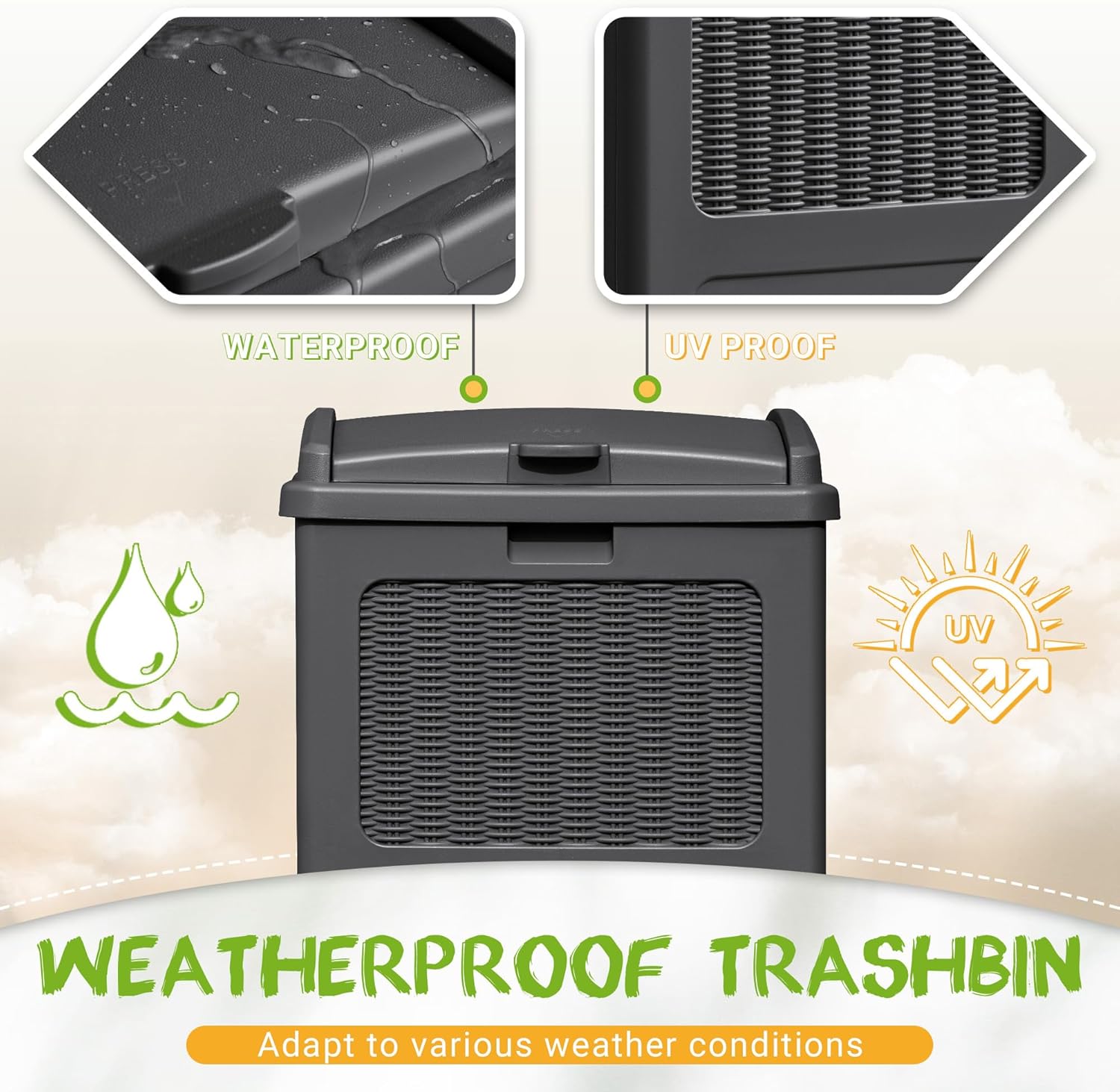 YESHOMY 33 Gallon Resin Outdoor Trash Can with Lid, Hideaway Waterproof Patio Garbage Bin, Gray