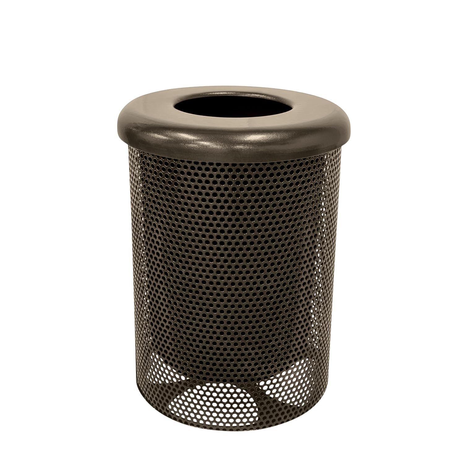 COATEDOUTDOORFURNITURE RFT-P-TXTBRW Heavy Duty Round Trash Receptacle with Flat Top, Liner Included, 32 Gallon, Textured Brown, Made in America