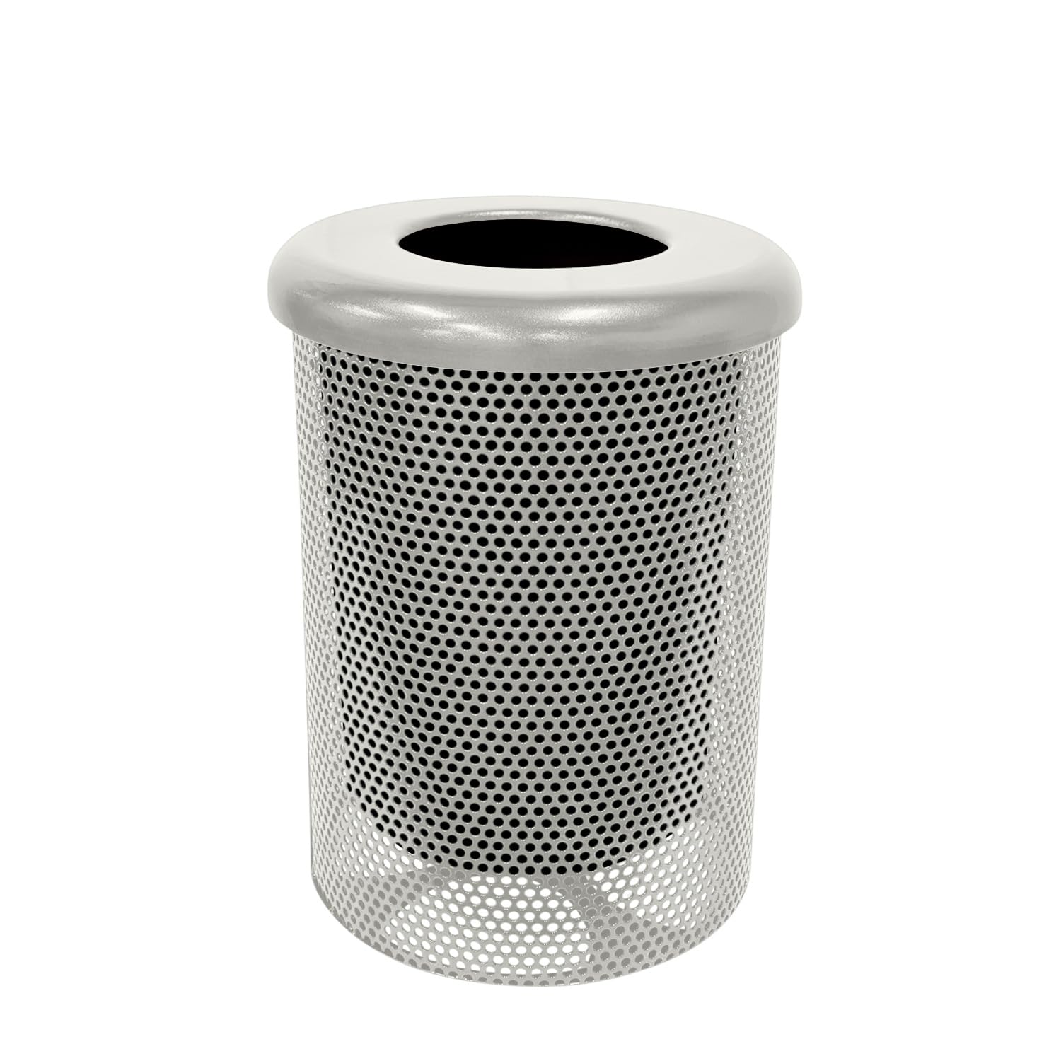 COATEDOUTDOORFURNITURE RFT-P-Gry Heavy Duty Round Trash Receptacle with Flat Top, Liner Included, 32 Gallon, Gray, Made in America
